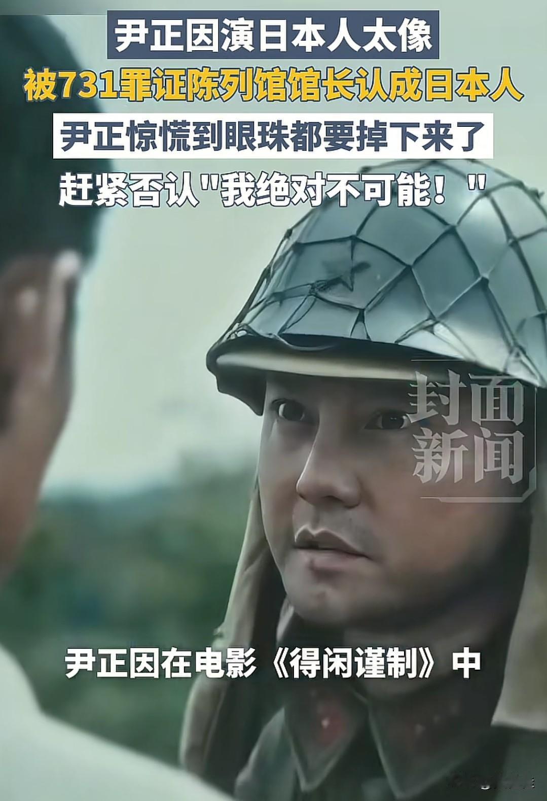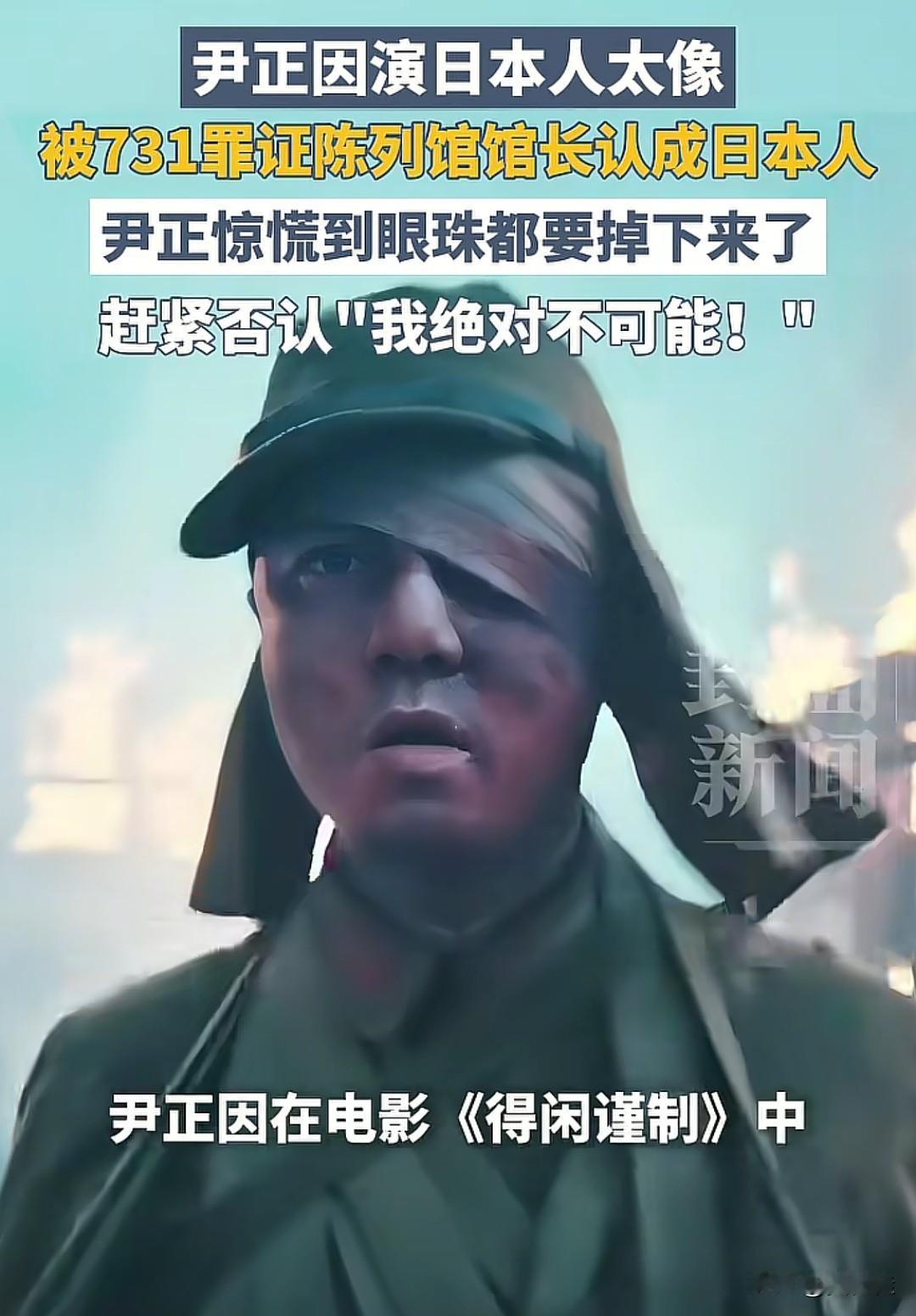 演技太好也不是好事,这话放尹正身上可太贴切了!他在《得闲谨制》里演日本人,愣是把731罪证陈列馆馆长都骗了,人家直接把他当成真日本人,这误会可闹大了。 尹正当时那反应简直笑死人,眼珠子都快瞪出来了,慌忙摆手否认“我绝对不可能是日本人”,那惊慌的样子隔着屏幕都能感受到。不得不说,尹正这演技是真的绝,把角色的神态、气质拿捏得死死的,才能让熟悉日本相关历史的馆长都看走眼。 不过也能理解尹正的慌张,毕竟在731罪证陈列馆这种地方被认成日本人,换谁都得赶紧撇清。只能说演员演技好是本事,但演得太像闹出这种乌龙,也算是独一份的经历了。