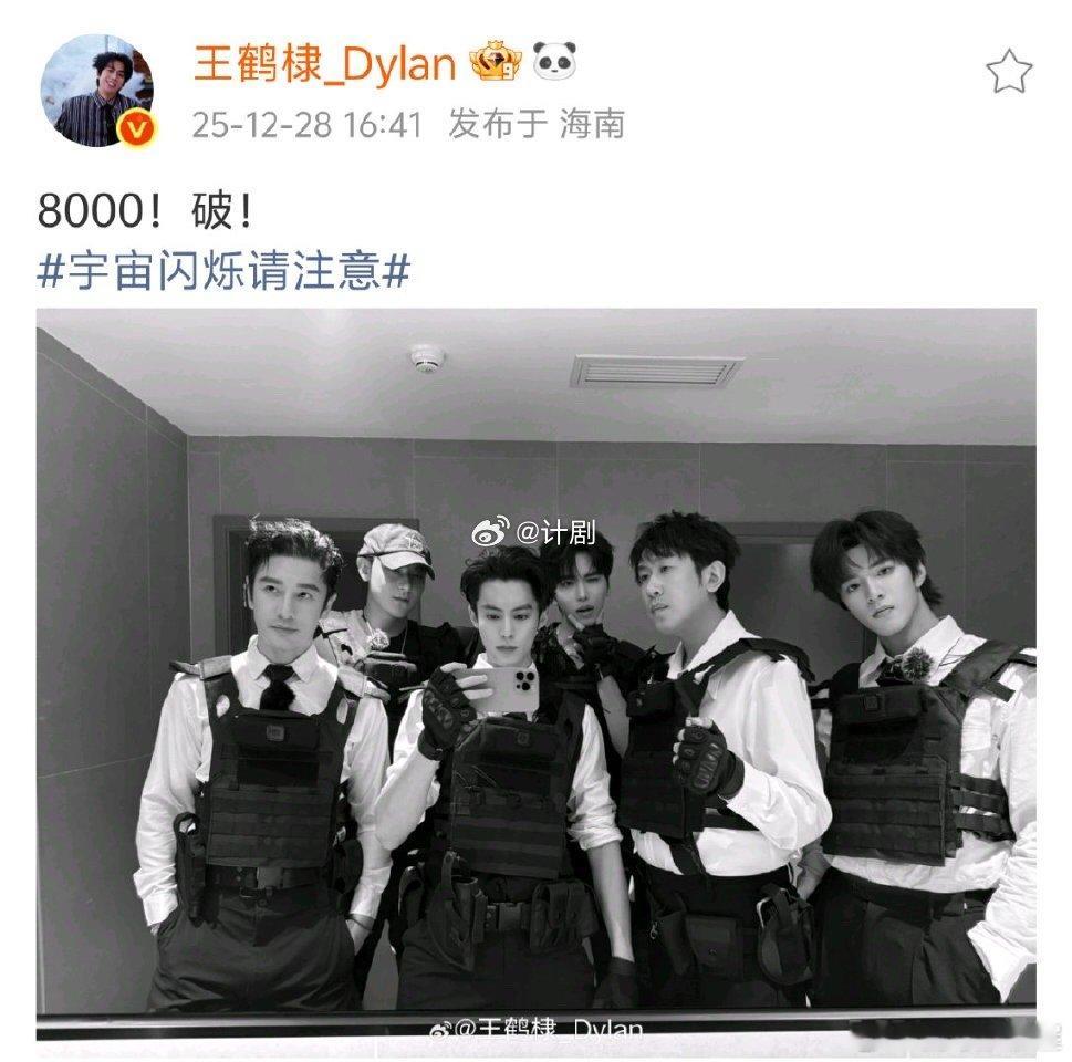 王鹤棣说8000破 王鹤棣说到做到,《宇宙闪烁请注意》热度破8000立刻晒合照,兄弟情和宠粉心意都写在脸上,这样的兑现承诺,谁看了不说一句靠谱。