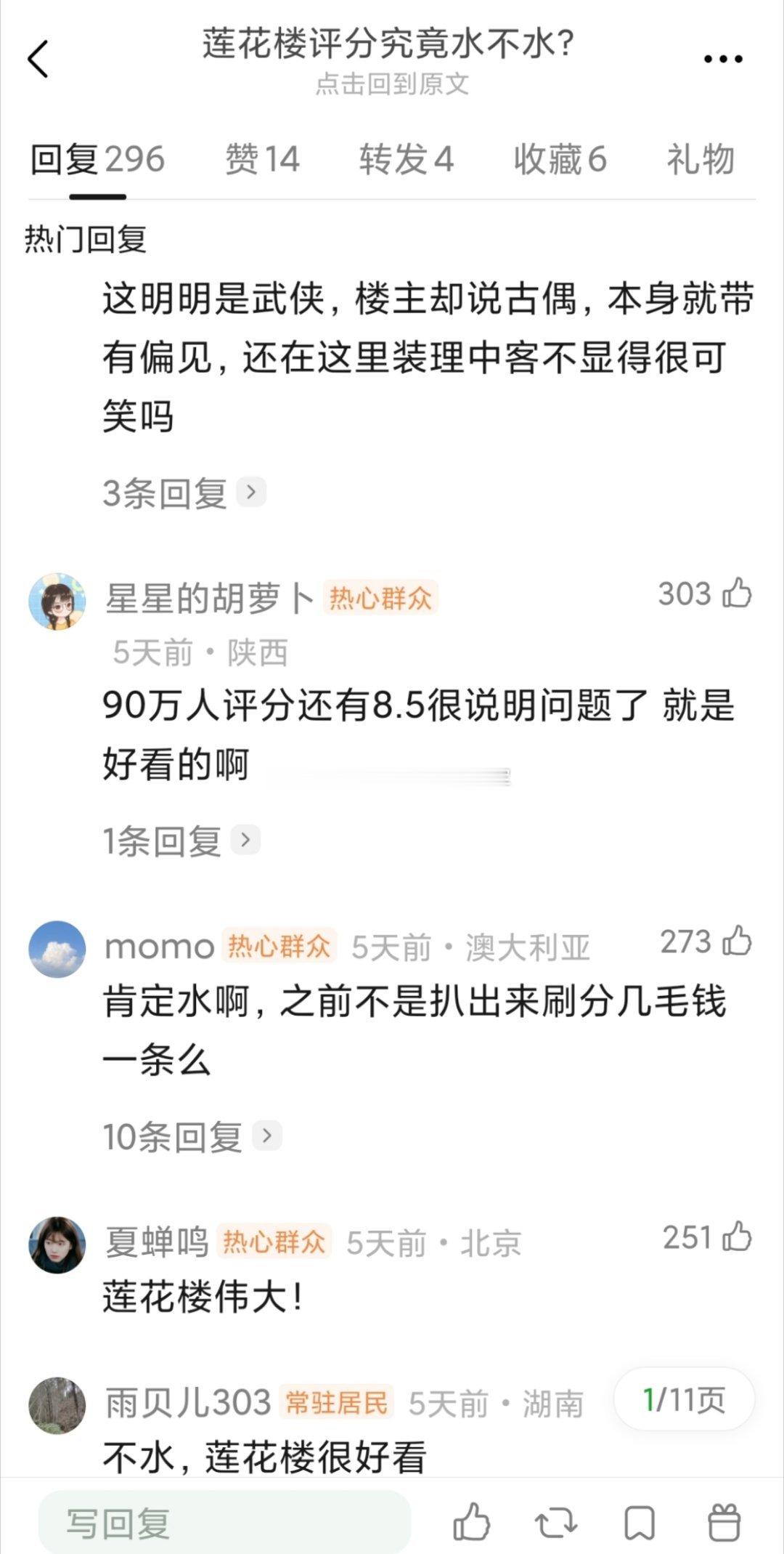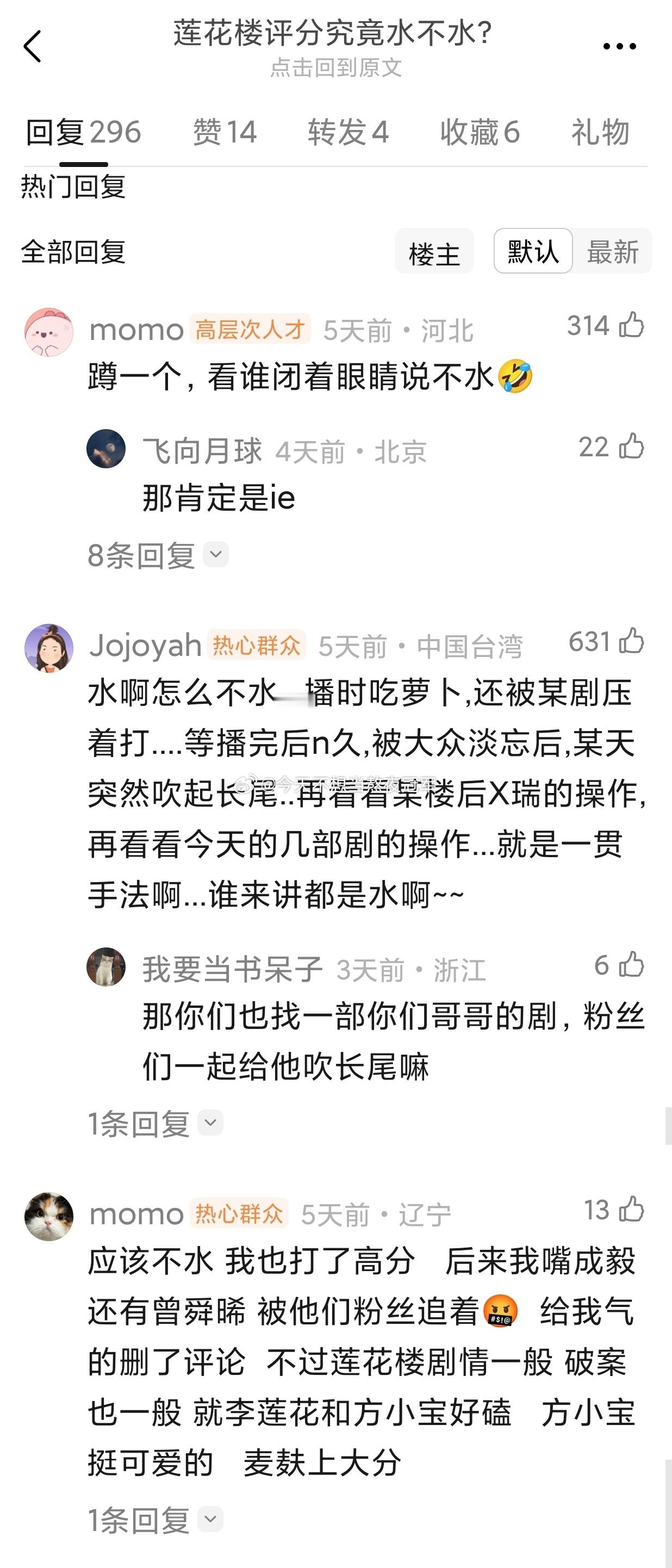 成毅《莲花楼》播完这么久了,网友还在高楼辩论91w人评出8.5分的《莲花楼》这个分数到底水不水?我印象中《莲花楼》刚开分是8.0吧,后面是一点点升上来的2026和成毅江湖再会