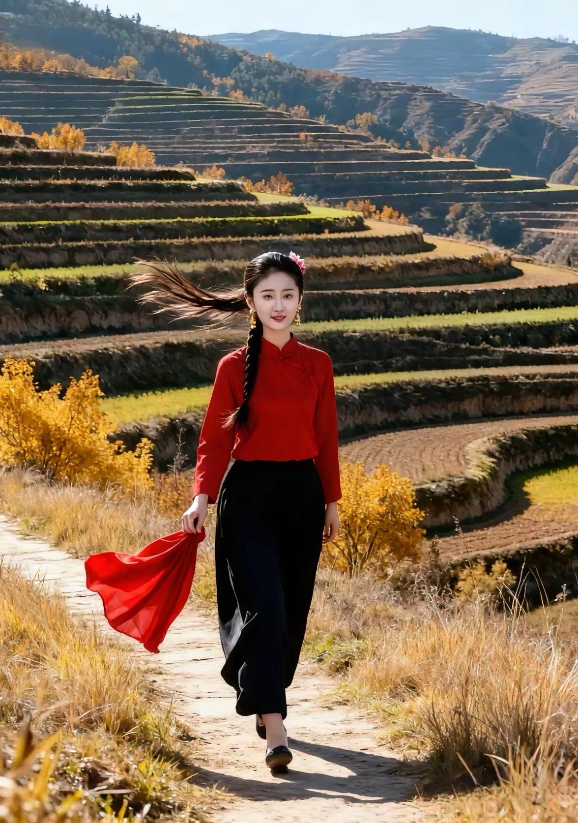 秋日暖阳下,温柔少女轻抚落叶,感受季节的美好。🍂🌞