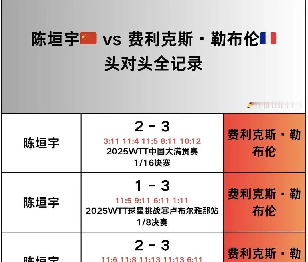 直板克星?陈垣宇全年0胜 0胜记录摆在这儿,比输球更扎眼。全年碰上王皓系打法,全输。乒超最后一轮,被薛飞一板横打直接送走,明润队直接放假。 薛飞排名47,技术却像复印机,反手拧拉、正手快带,一模一样。球糙,可节奏稳,陈垣宇正手再凶,也被反手锁死。前三板赢不了,后面全是被动。 勒布伦兄弟更狠,费利克斯反手弹击带侧旋,球拐着弯往外跑,陈垣宇拉丢一拍,后面全乱。教练组说,反手相持是命门,练了半年,还是顶不住。 直板没死,只是升级了。王皓当年靠反手横打翻身,现在薛飞、勒布伦把这一招练成杀招。横板两面弧圈再主流,也怕这种不讲理的近台快撕。 想破局,先把反手练成墙。正手再漂亮,挡不住反手三板斧,永远冲不到前面。