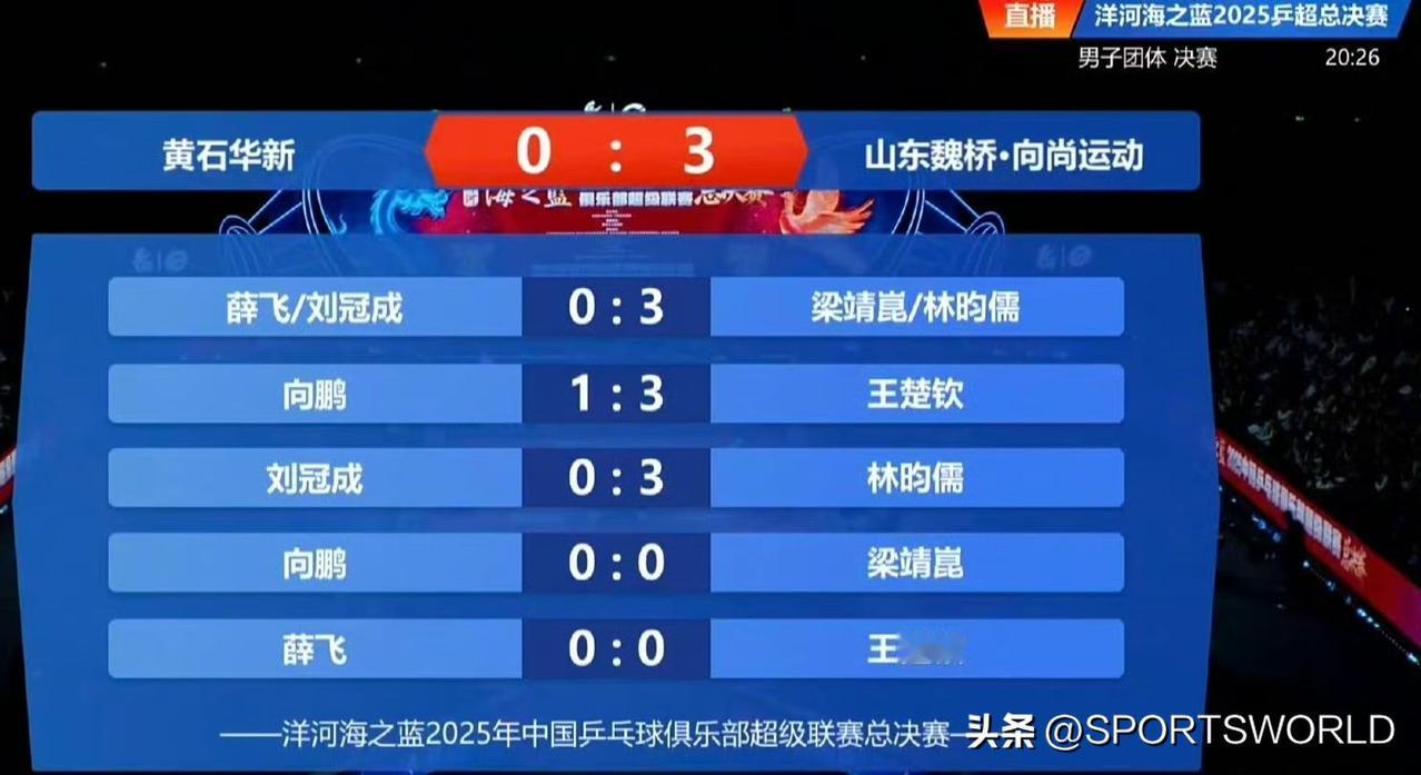 看了2025乒超联赛男团总决赛,真的很为中国男乒未来担心! 最终结果山东魏桥3-0黄石华新,再夺男团冠军!第一场:梁靖崑/林昀儒3-0薛飞/刘冠成,第二场:王楚钦3-1向鹏,第三场:林昀儒3-0刘冠成 。 王楚钦是国乒一哥,除了王楚钦之外,其他年轻球员差距实在太大。日本有张本智和当打之年,更有18岁的松岛辉空,打王楚钦都势均力敌甚至有取胜的希望。再看看我们的年轻球员向鹏,他其实还算好的,但完全无法与王楚钦抗衡;而刘冠成已经20岁了,打林昀儒差距实在太大,几乎每一分都打不过3板球,这样的后备力量说明了我们的男单断代太严重了,现在还有王楚钦和林诗栋顶一顶,未来中国男单会更艰难。