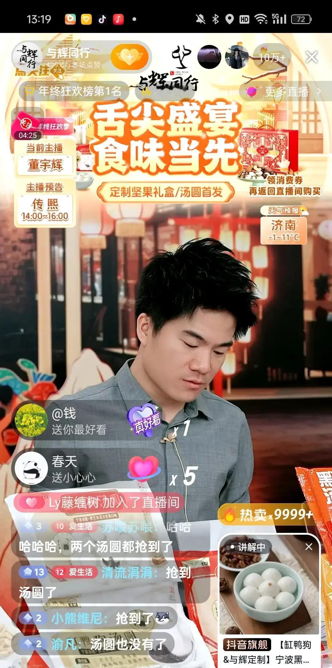 20万单汤圆3分钟抢空 昨晚董宇辉卖汤圆,后台系统直接崩。20万单汤圆、2万