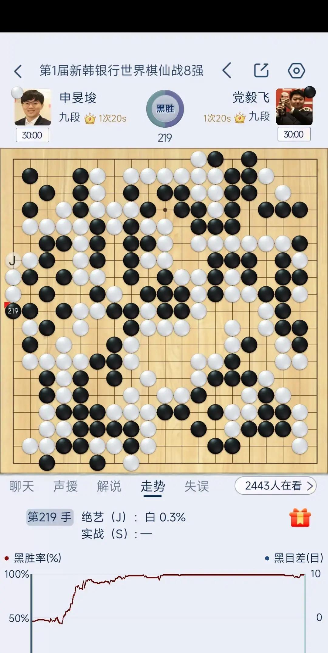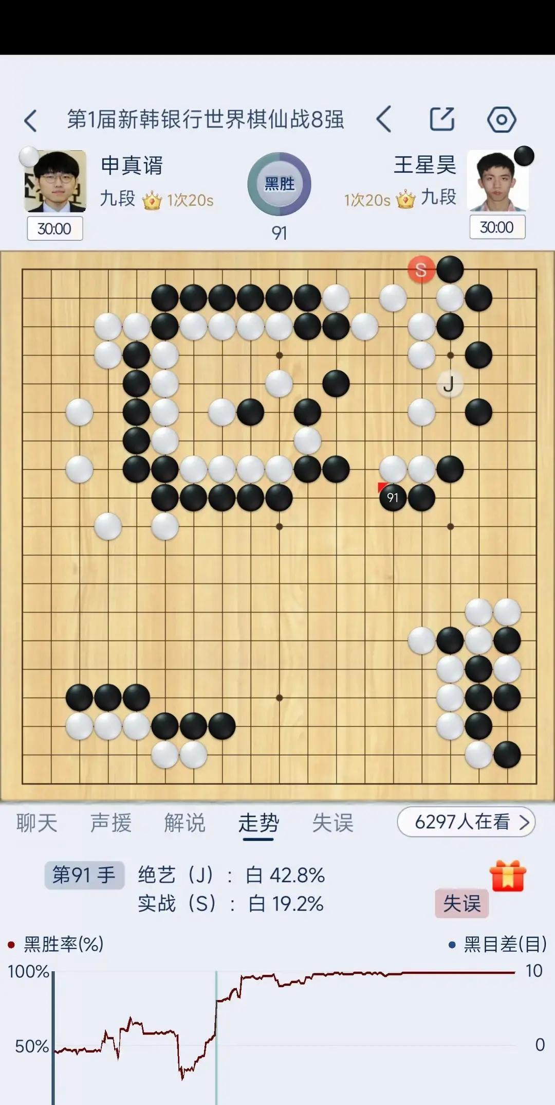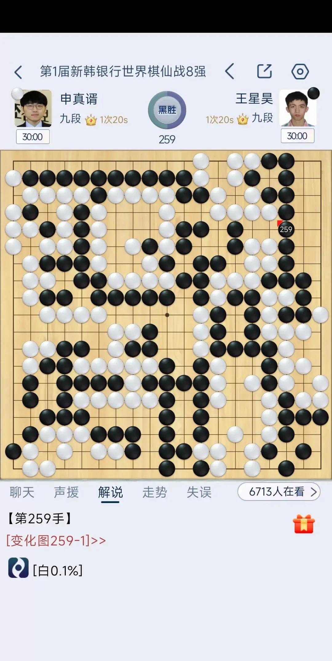 再不做这件事,你会错过围棋圈年度最炸热搜! 王星昊,19岁,今天把世界第一申真谞打下擂台。 棋仙战8强,王星昊白259手屠龙,申真谞罕见摇头认输。 这是两人第11次交手,王星昊第4次赢,胜率从三成拉到四成。 同天,党毅飞也把韩国申旻埈收拾干净。 中国双杀,热搜爆了。 赛事新、奖金高,300万,单败淘汰,一步天堂一步回家。 30号杭州三番棋半决赛,王星昊等一力辽或朴廷桓。 抄作业:看直播,学开局三招,明天就能用。