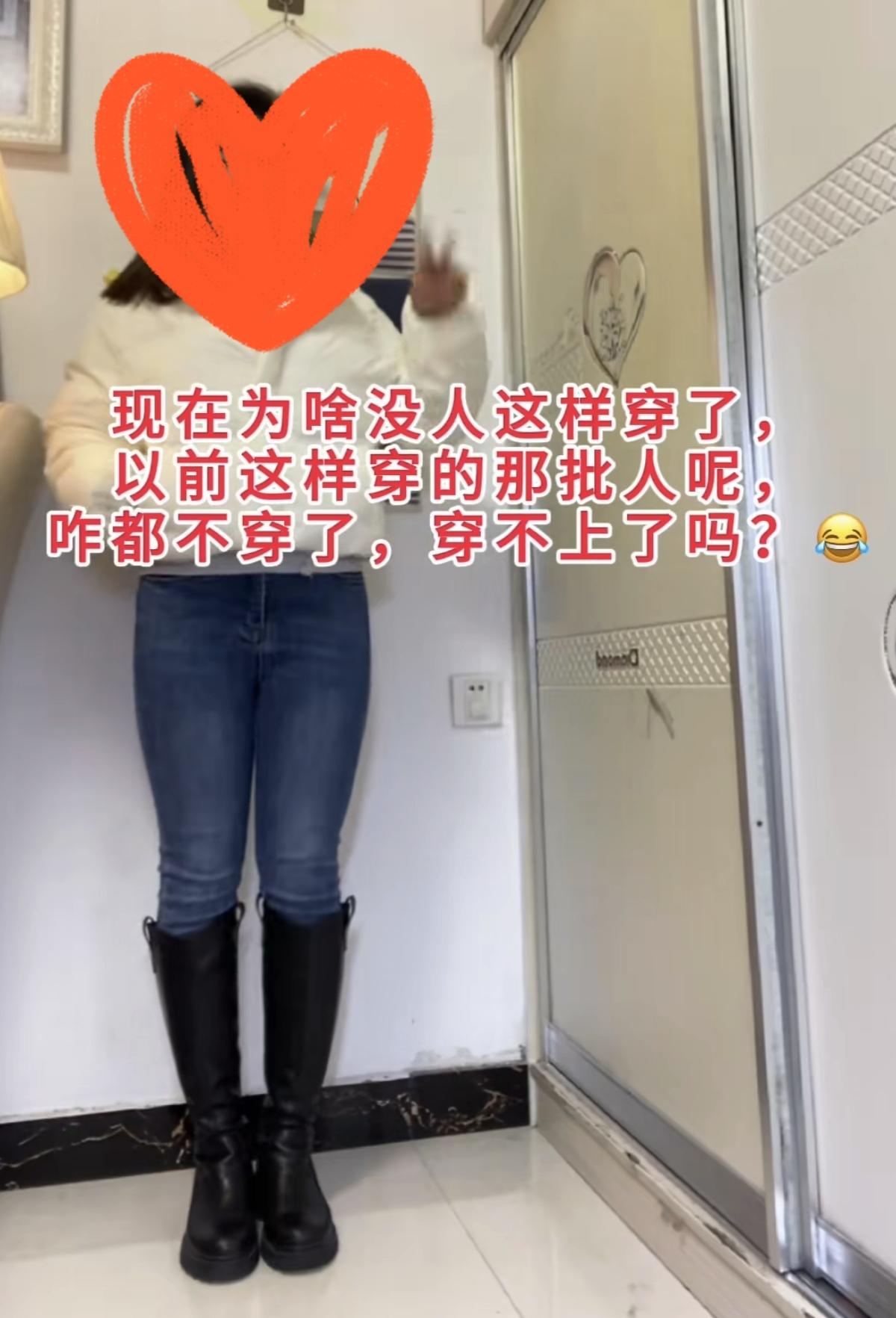这应该是70后,80后一代,曾经的流行穿搭。那时候不少年轻女性,冬天的时候,类似这样的穿搭挺多的。有段时间,也确实流行高筒靴,好多赶时髦的姑娘们都会穿。 但是最近这些年,大家在穿搭方面,主打一个舒适度。鞋子之类的,哪种款式穿的舒服,就买哪种款式的。渐渐的,高跟鞋、高筒靴之类的,就不怎么流行了。 因为,这类鞋子,没有运动鞋,平底鞋之类的穿起来舒服。然后在服装方面,现在也是怎么舒适怎么穿。相对款式也多样化了,衣服版型也宽松了很多。 以前的紧身服之类的,穿的人也越来越少了。所以,以前流行的这身穿搭,渐渐的也就不穿了。就算是80后,也很少这么穿了。