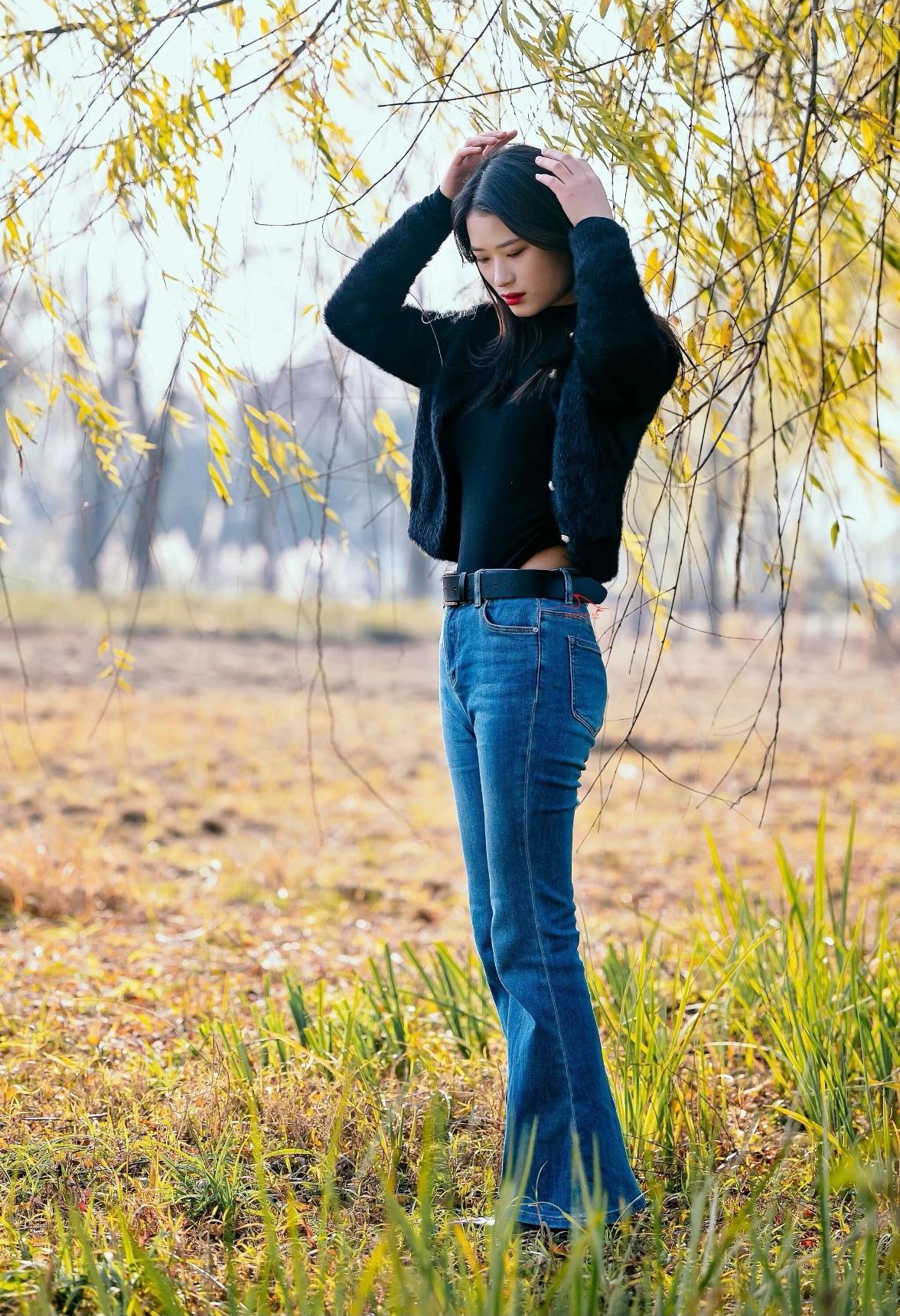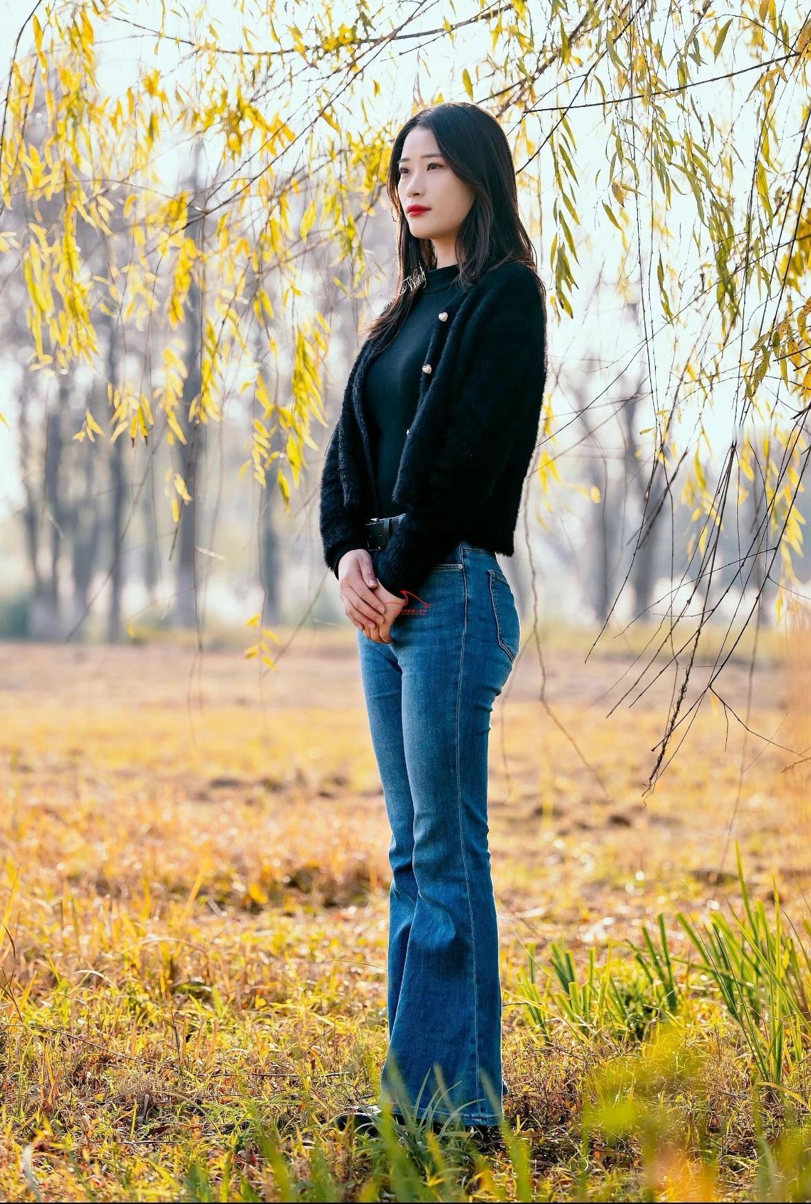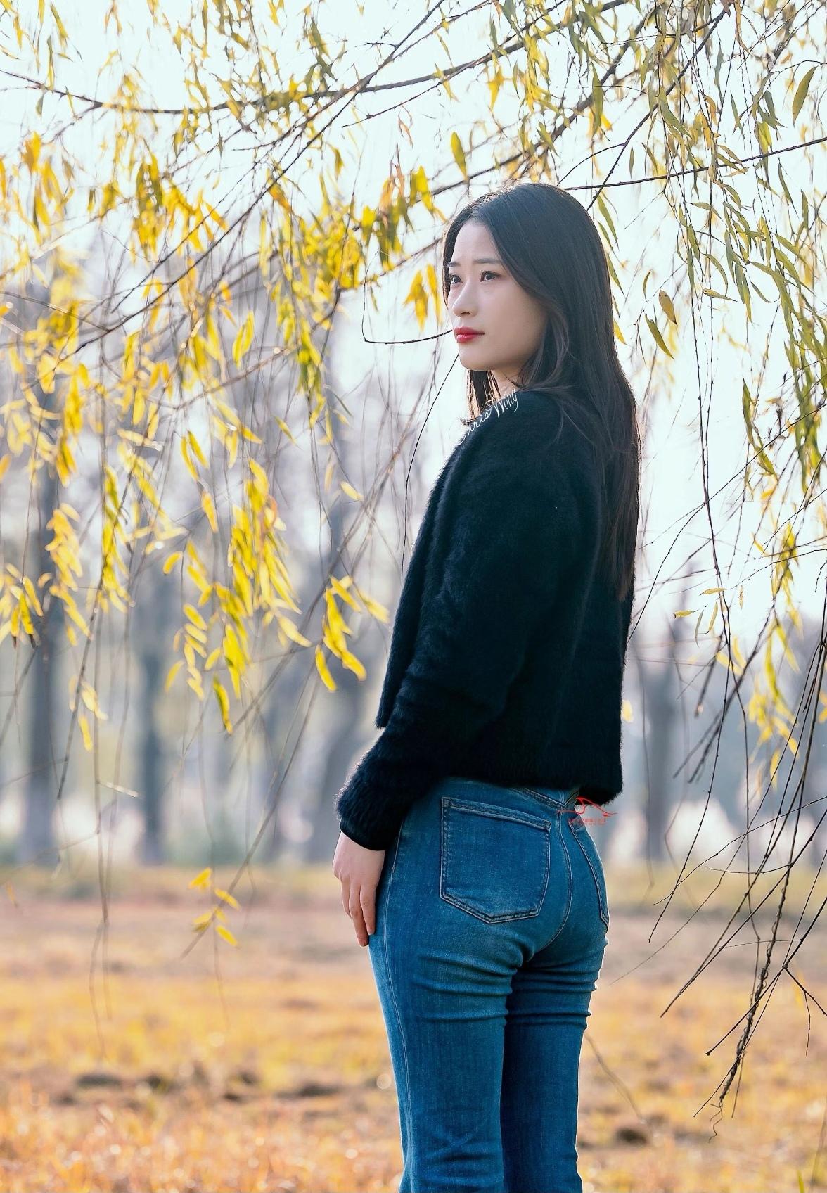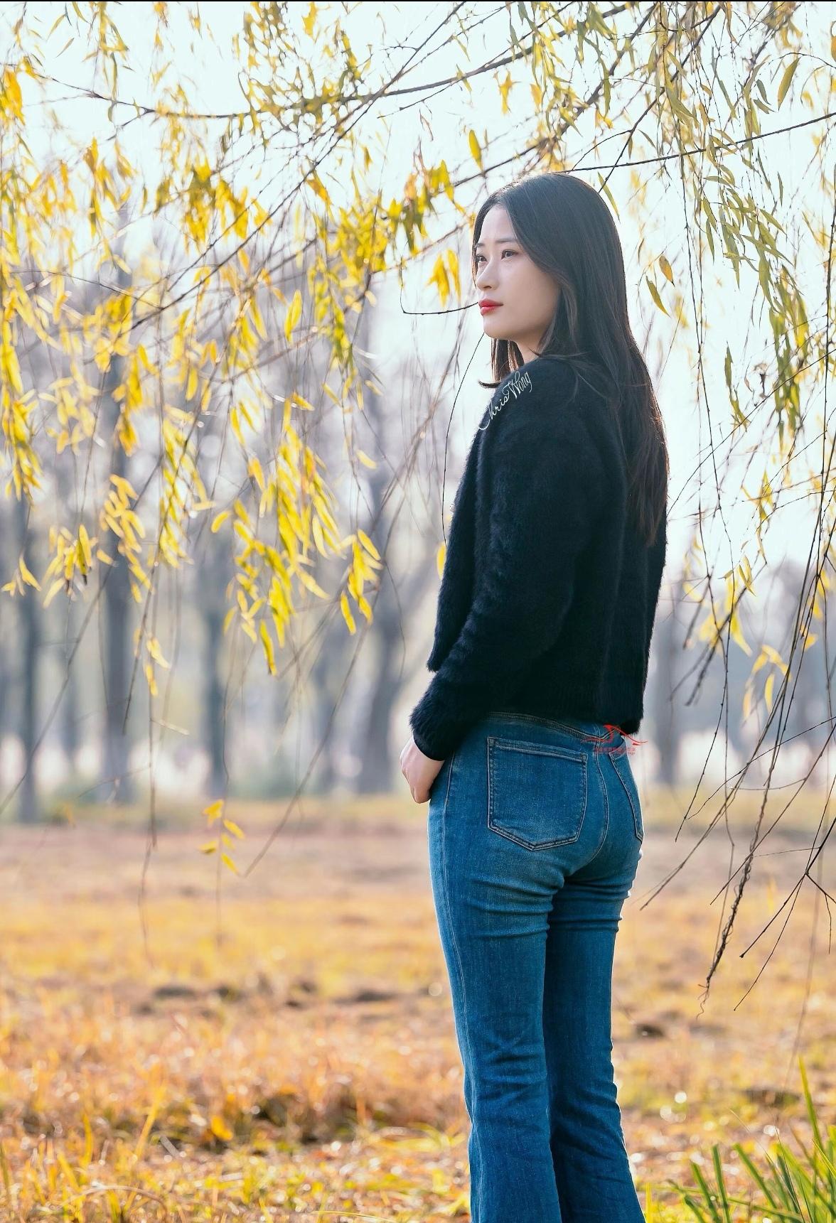 秋日暖阳下,温柔少女轻抚落叶,感受季节的美好。🍂🌞