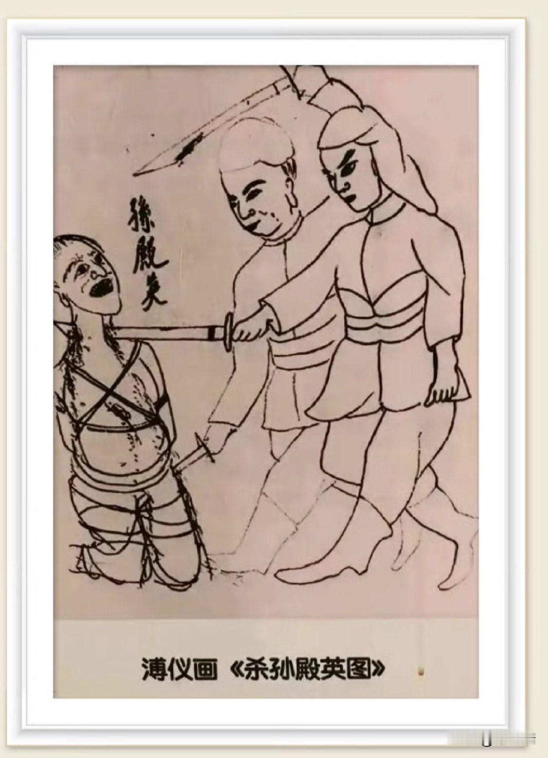 《杀孙殿英》,是中国末代皇帝溥仪创作的漫画。 1928年,军阀孙殿英洗劫了乾隆皇帝和慈禧太后的陵墓。听到这个消息后,溥仪非常愤怒,于是创作了这件作品来发泄他的愤怒。