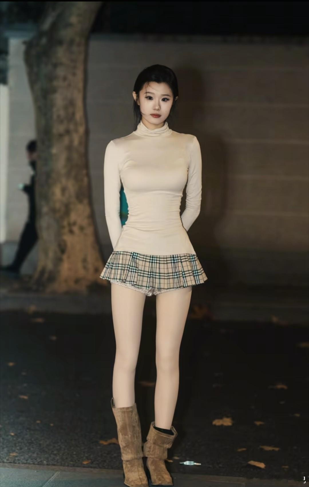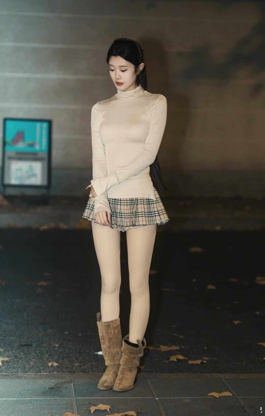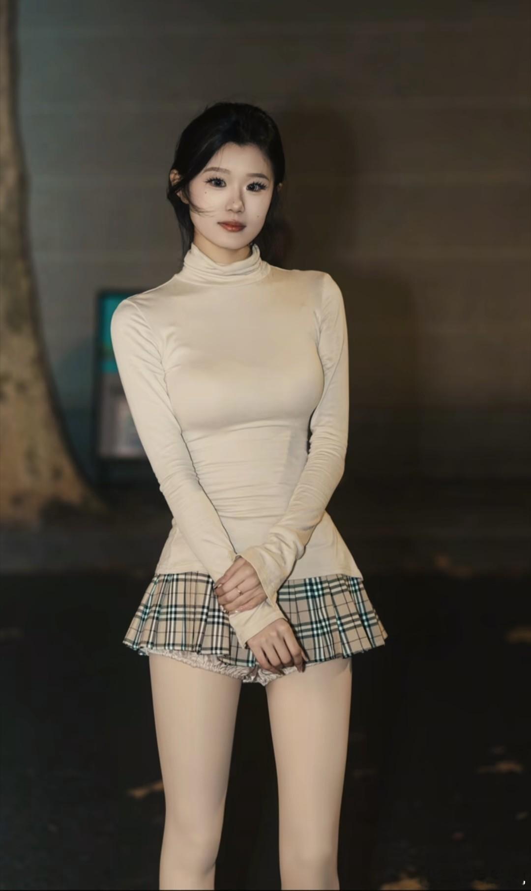 这件浅粉色连体针织裙搭配这位小姐姐精致的五官,简直就是妙不可言!气质出众,长相甜