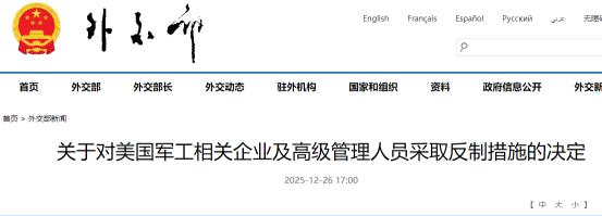 中国出手了。 北京方面释放明确信号: 这回的意思很直白:不跟你吵架了,直接让你“断粮”。做法也不是一张纸吓唬人,而是一套组合动作,先把相关美国军工企业的资金和人员往来卡住。   12 月 17 日,美国白宫一纸公告砸向台海,111 亿美元的对台军售清单创下历史纪录,82 套 "海马斯" 火箭炮、480 枚战术导弹、60 门自行火炮,连淘汰的 AH-1W 直升机零件都混在里面当 "新货" 卖。   美国防部还高调宣称要帮台军搞 "无人系统联合计划",摆明了要把台湾打造成遏制中国的 "军火堡垒"。可他们没算到,24 小时内中方的反制就已上路。   12 月 26 日外交部的公告更是直接亮出底牌:20 家美军工企业、10 名高管被精准 "点名",一套 "冻资产 + 卡供应链" 的组合拳拳拳到肉。   这次反制最狠的地方,是压根不跟你玩 "口头警告" 的虚招。被盯上的 20 家企业里,既有诺斯罗普・格鲁曼这种造隐形轰炸机的巨头,台湾 F-16V 的雷达就是它家的核心货,也有蒂尔无人机、拉撒路 AI 这类搞尖端技术的新锐公司。   中方直接冻结它们在华所有动产不动产,禁止任何中国企业和个人跟它们做生意。更绝的是对高管的制裁:安杜里尔创始人帕尔默・卢基这些大老板,不仅资产被冻,连香港澳门的入境签证都没了,等于直接切断了他们跟中国市场的联系。   这一发现不仅揭示了美国国防工业的致命软肋,也印证了中国在关键资源领域的战略布局已让对手“感到痛”。   以美军现役的F-35战斗机为例,每架需消耗超过900磅(约408公斤)稀土材料,其中钆、铽、钇等中重稀土元素是隐身涂层、雷达系统和发动机的核心成分。   然而根据美国地质调查局数据,2024年美方83.7%的稀土进口来自中国,重稀土依存度更高达97%。   这种依赖并非偶然——中国掌握全球70%的稀土开采量、90%的精炼产能,以及99%的重稀土供应,而美国自上世纪90年代关闭本土矿山后,产业链断层已持续30余年。   这还只是第一招,真正的杀招藏在稀土供应链里。美国军工早就被中国 "卡了脖子" 却不愿承认:五角大楼 78% 的武器系统依赖中国的关键矿产,每架 F-35 战斗机要烧 408 公斤稀土,重稀土依存度更是高达 97%。   这些 "工业维生素" 是隐身涂层、雷达和导弹制导系统的命门,少了钇元素,喷气发动机的热障涂层扛不住高温;缺了镝和铽,高精度陀螺仪直接变成 "瞎子"。   美国加州虽有稀土矿,却得运到中国加工,本土重稀土工厂年产量还不到中国的 1%,库存只够撑 3-6 个月。现在中方明确说了,军工用途的稀土出口 "原则上不予许可",等于直接关上了补给门。   美国这波纯属自找苦吃。明眼人都看得出来,百亿军售就是笔 "黑心买卖"—— 把淘汰装备当宝贝卖,既赚台湾民众的血汗钱,又能给军工复合体输血,还想复制 "乌克兰模式" 把台湾绑上战车。   可台湾民众不傻,2025 年防务预算要涨到 GDP 的 3%,教育医疗开支被大幅挤压,网上抗议连署一天就破百万。美国自己更心虚,智库私下都承认 "不会为台湾打仗",说白了就是想让别人替自己 "抗中",坐收渔利。   这次反制也透着中国的战略智慧:先依法亮剑,用《反外国制裁法》把行动摆在明面上,让美国没理由撒泼;再精准打击,不搞 "一刀切",专挑直接涉台军售的企业下手;最后用稀土打七寸,这可是美国短期内补不上的短板。   对比 2024 年的反制名单能发现,中方的手段越来越成熟,从瞄准传统军火商,扩展到无人机、AI 等新技术领域,等于断了美国用 "技术优势" 搅局的念想。 但中国显然早有准备:10 月就加强了稀土全产业链管制,现在又手握美债减持的筹码,美国想反扑也没那么容易。毕竟霸权的底气从来不是靠卖武器撑的,而是看供应链够不够硬、道义站不站得住脚。   说到底,这次反制就是给美国划下红线:台湾不是你清库存的垃圾桶,更不是遏制中国的棋子。想用军售搅局?   行,先掂量掂量能不能承受 "断粮" 的代价。那些还在伸手的企业得想清楚了:是要中国市场和稀土,还是要跟着美国做损害中国主权的蠢事?答案其实早就写在公告里了。