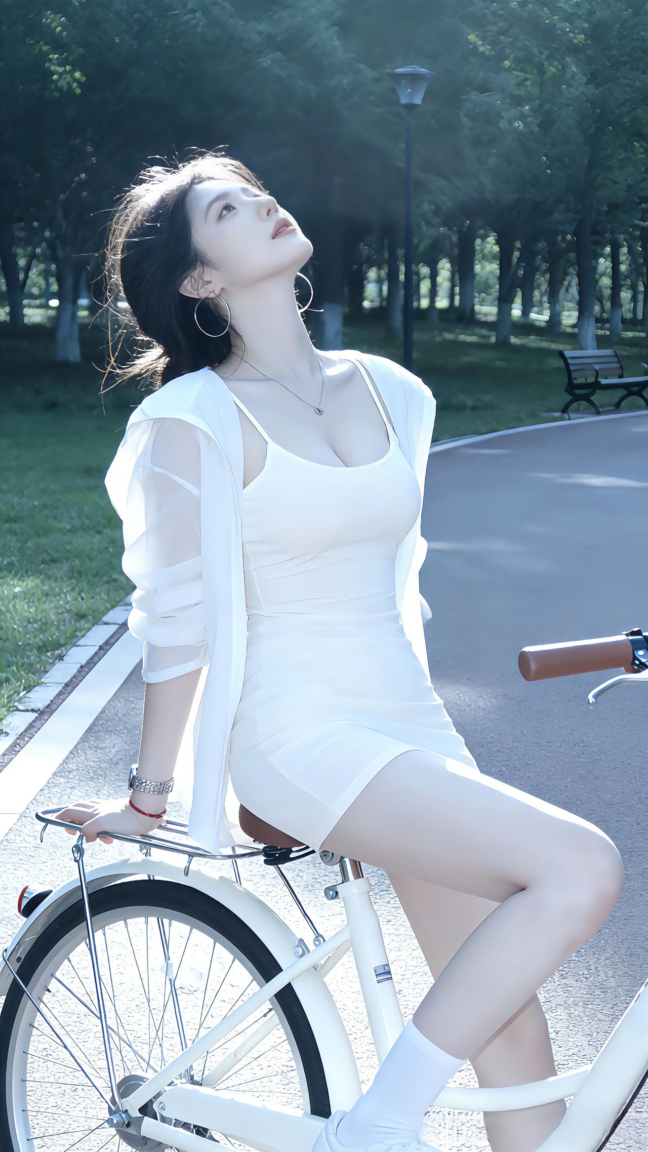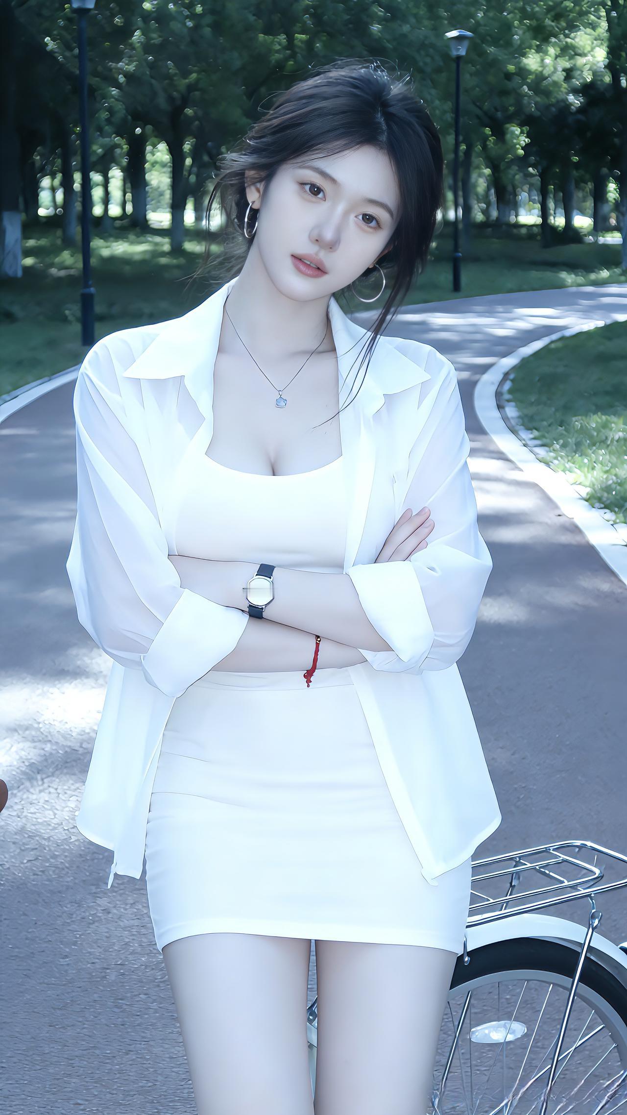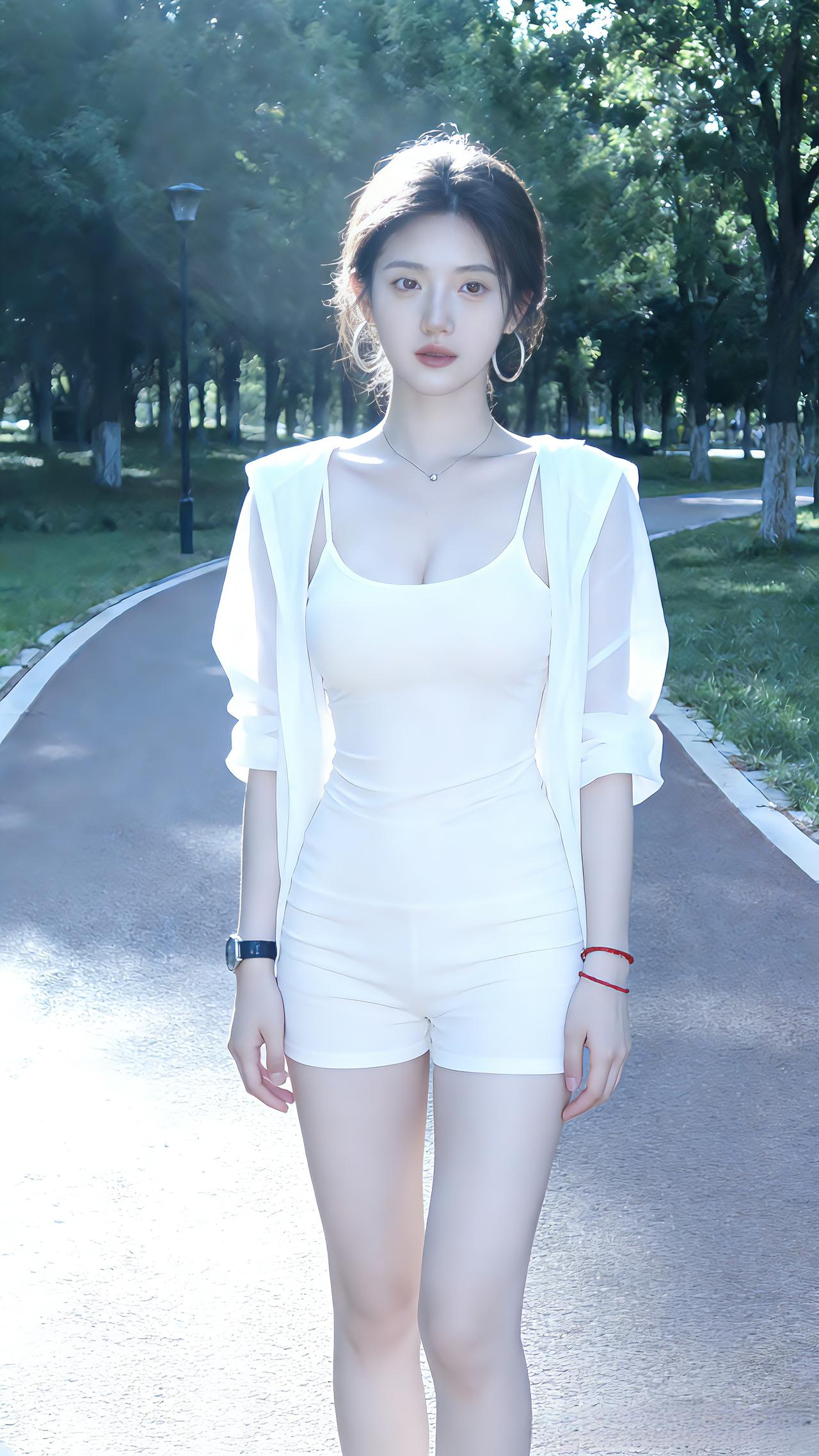 清新穿搭,白色连衣裙搭配薄纱外套,阳光下的美丽少女
