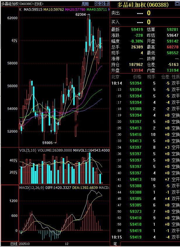 多晶硅期货进一步限仓、提高手续费和开仓数量后,今天成交量急剧下滑,截止到10:15,多晶硅加权指数仅成交2.6万手多晶硅期货