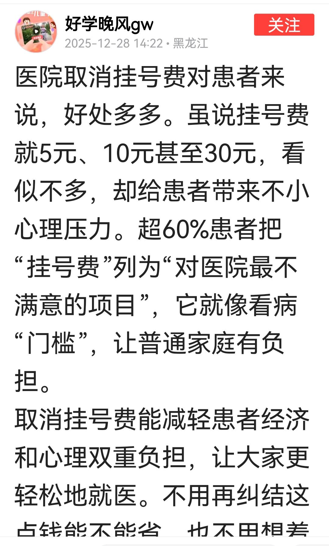 挂号费让人有负担?好笑了,剪个普通的头型都得30起步,意思你的命不值钱? 取消挂号费,可以啊,给医生拒诊的权利!想白嫖的坚决不看[大笑]