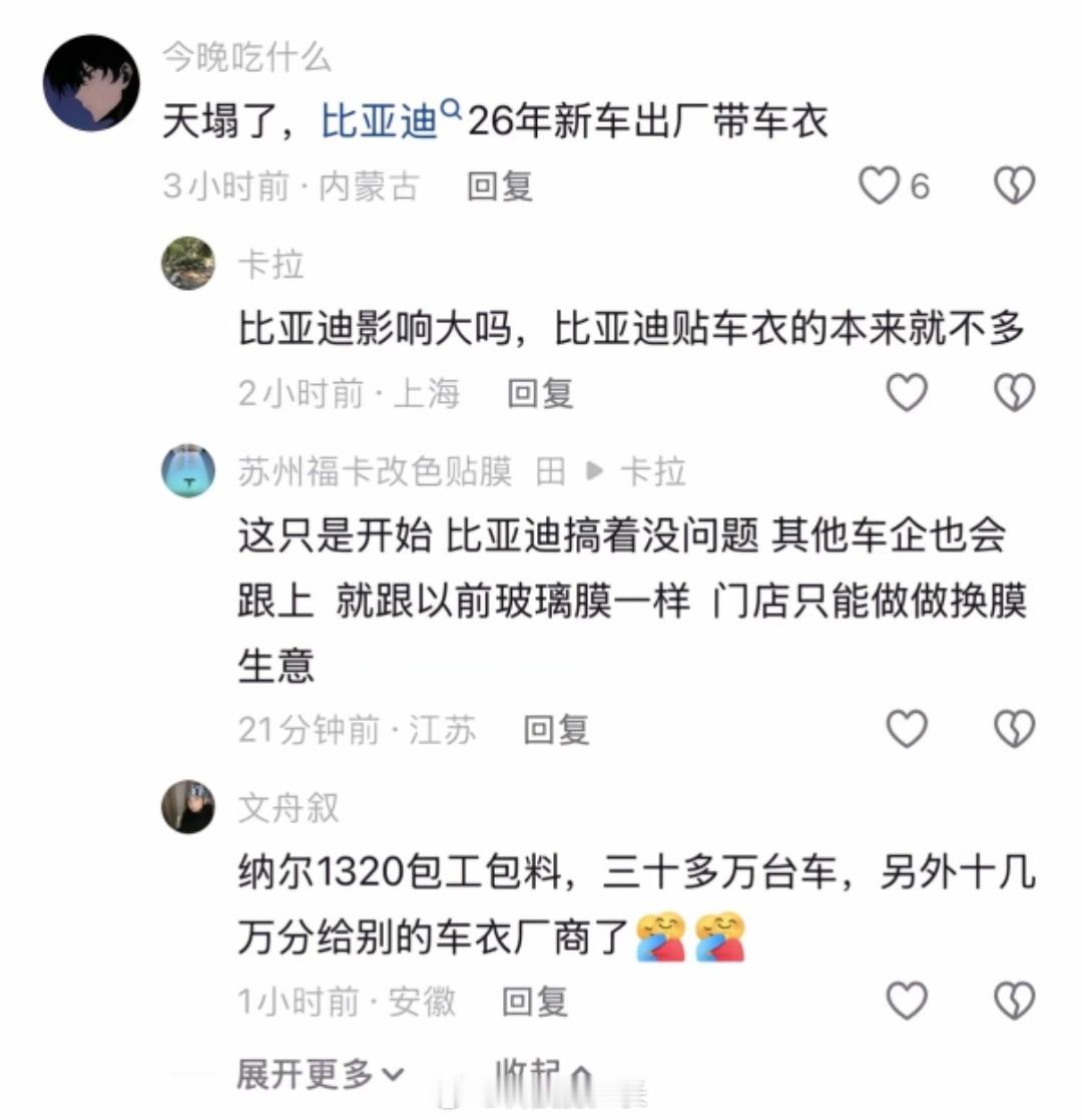 手机自带出厂膜,汽车也要自带车衣,比亚迪要被贴膜店记恨上了
