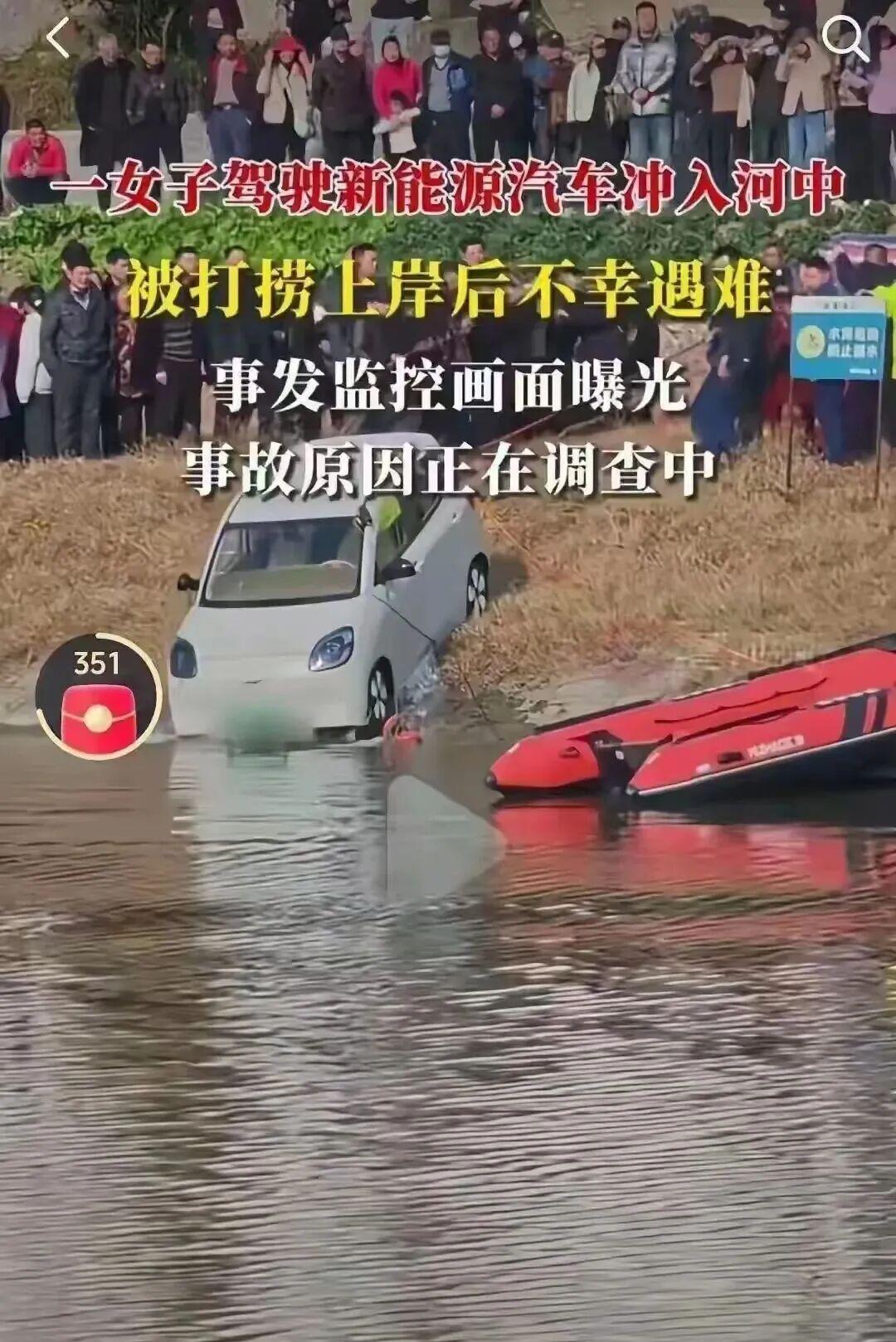 据说这就是湖北天门驾车坠河的26岁女子,8个小时才被人发现,也不知道她经历怎样的煎熬,照理在水淹没汽车之前,她是可以打电话报警求助的啊,难道冲入河中时人晕过去了。新手上路,开着一辆两三万块农村常见的新能源车,对车辆性能不熟悉,电车的油门猛,估计误把刹车当油门了,这是新手司机常犯的错误之一。坠河溺亡