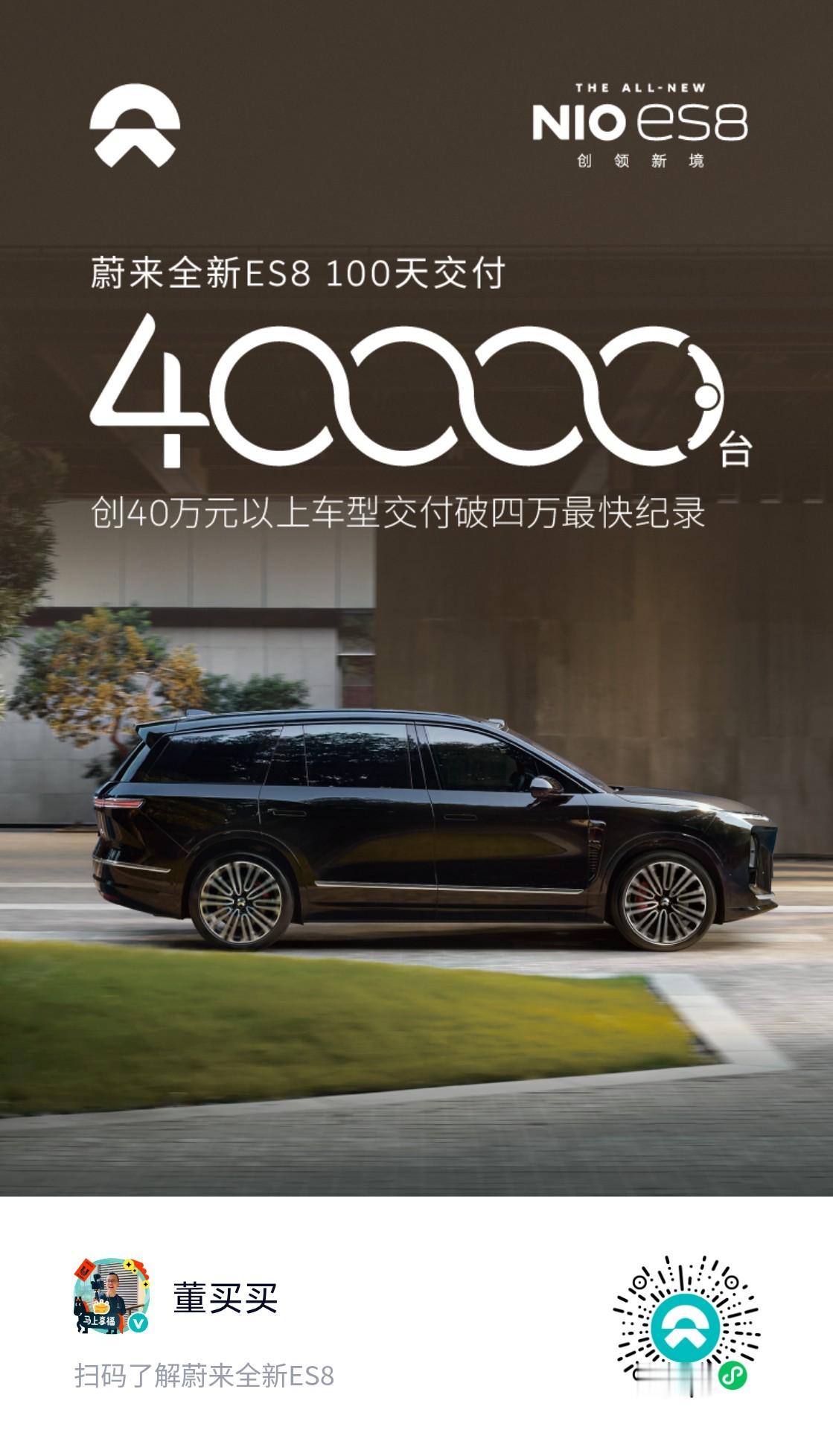 官图来了,全新ES8 百日4万台。40万以上车型交付破4万最快记录。是的,交付量起来了,定语就少了。蔚来全新 ES8 已成为高端消费群体的主流之选。从“现象级产品”到“市场主流选择”,纯电大三排 SUV 的销量已连续三个月排名所有动力形式榜首。2026年还买增程,要小心二手不好卖,没人接盘哦,因为纯电已经是主流了。