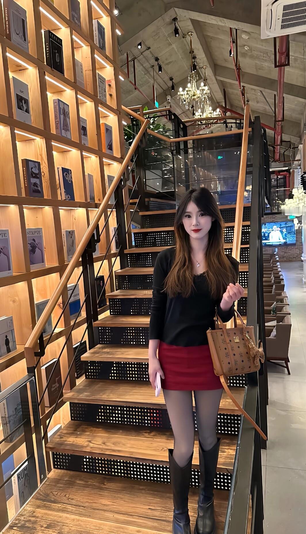 时尚穿搭指南:黑色上衣+红色短裙,搭配棕色手提包,尽显优雅气质!