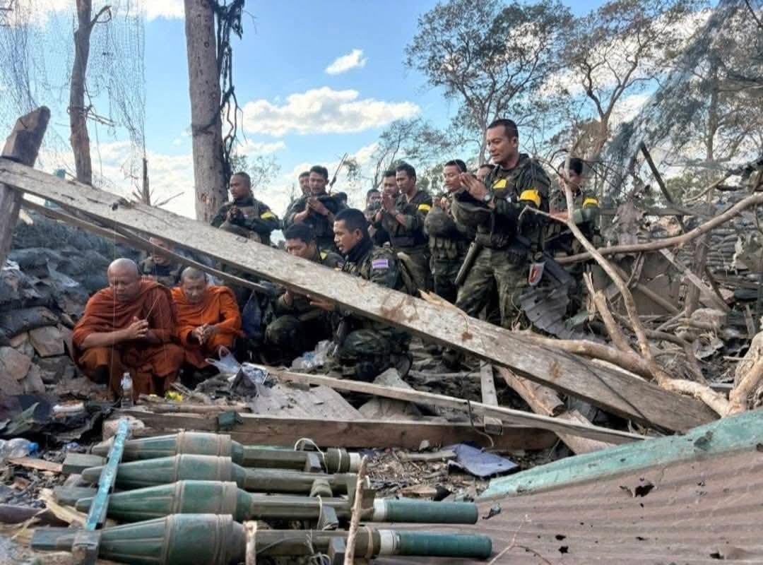 泰国僧侣给战死官兵做超度! 泰国第二军区军队,在夺取350高地后,邀请两位高僧做法,为之前阵亡两名官兵祈福超度!泰国民众还是很相信僧侣的作用,尤其是在各个方面,都比较相信僧侣,可以超度亡魂。尤其是这些在战场上阵亡的官兵,更是会通过操作的方式,让他们回魂归家乡,甚至重新脱胎做人。 当然了,这是一种精神层面的做法,但仍然还是有一些作用。毕竟泰国人就信这个,而且这样做的话,对安抚泰国军队官兵的士气,也是有作用的。毕竟在战场上,谁都说不上谁会活下来,谁会阵亡。 通过这样的方式,可以完成对整个军队的安慰。不管怎么说,反正泰国打赢了。所以得打赢以后更是要超度亡魂,更好的掌握情况。 有一点可以证明,那就是这些泰国军队,一次次的展示出了足够的战斗力,也许这就是超度作用。