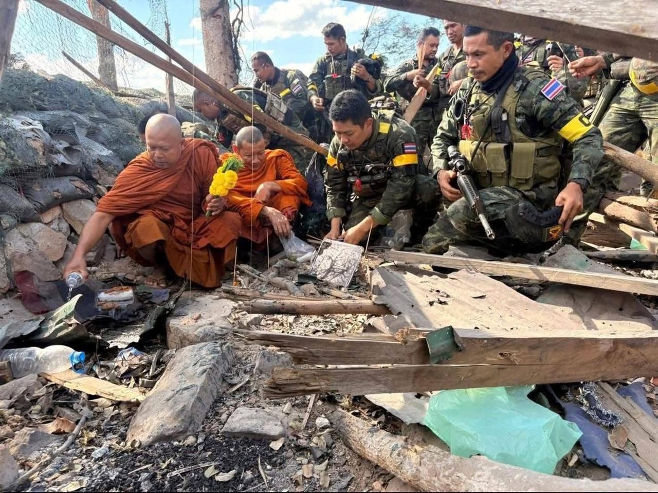泰国僧侣给战死官兵做超度! 泰国第二军区军队,在夺取350高地后,邀请两位高僧