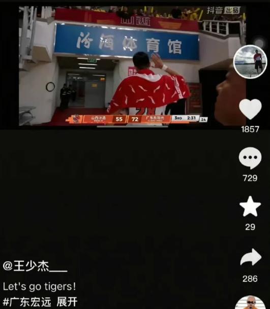 王少杰发文:Let's go tigers! 配图是他被罚出场的时刻! 9分钟4中4狂砍8分2板1抢断,防守抢断都在线,敢打敢拼超有劲! 面对山西迪亚洛毫不怂,广东队急需这种血性小伙。可惜两记技术犯规被罚下,第四节内线崩了。 身材单薄但速度飞快,快打法绝配。比上赛季进步飞速,就是犯规多。少杰状态正佳,下次少犯无谓犯规,多上场!广东队加油,王少杰冲鸭,期待更稳更狠的舞台!