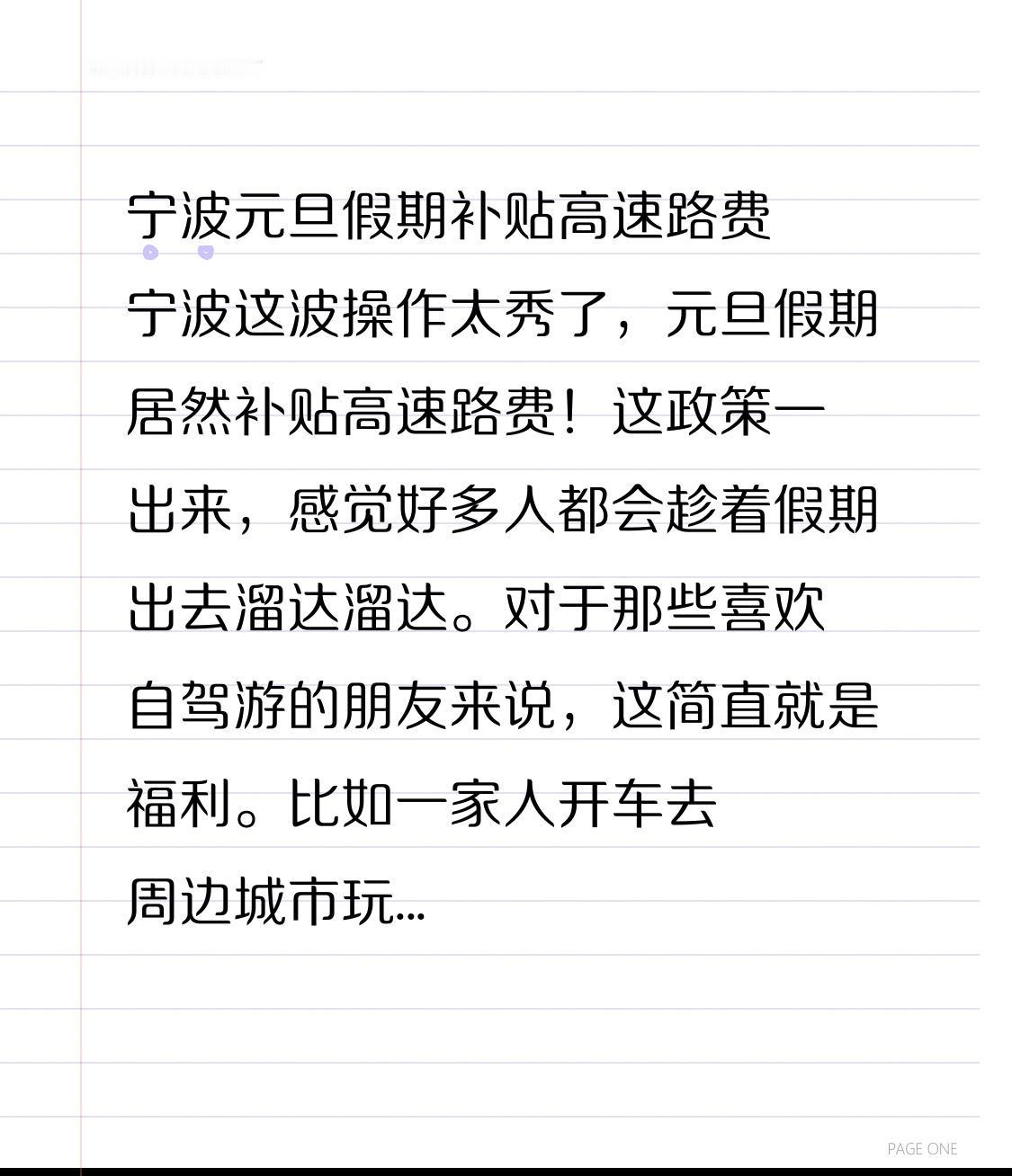 宁波元旦假期补贴高速路费 宁波这波操作太秀了,元旦假期居然补贴高速路费!这政策一出来,感觉好多人都会趁着假期出去溜达溜达。对于那些喜欢自驾游的朋友来说,这简直就是福利。比如一家人开车去周边城市玩,原本来回的高速路费可能要好几百,现在有补贴,能省不少钱。这不仅能促进旅游业,还能让大家出行的成本降低。不得不说,宁波这是把大家的假期安排得明明白白,让大家开开心心过元旦,痛痛快快去游玩!