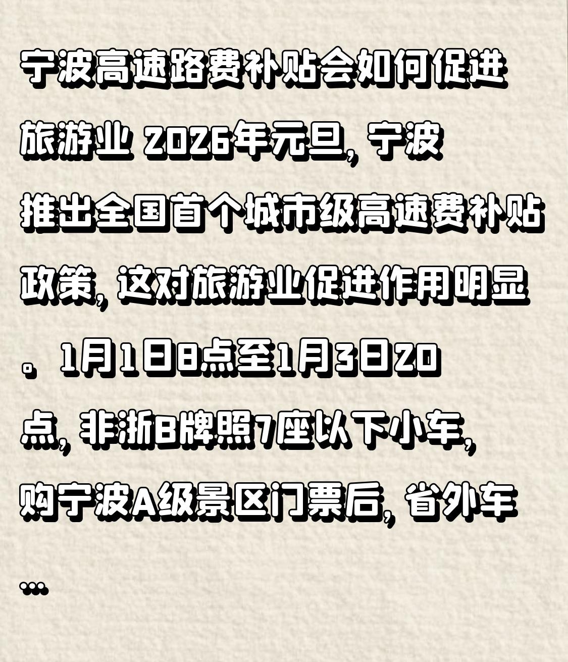 宁波高速路费补贴会如何促进旅游业2026年元旦,宁波推出全国首个城市级高速费补
