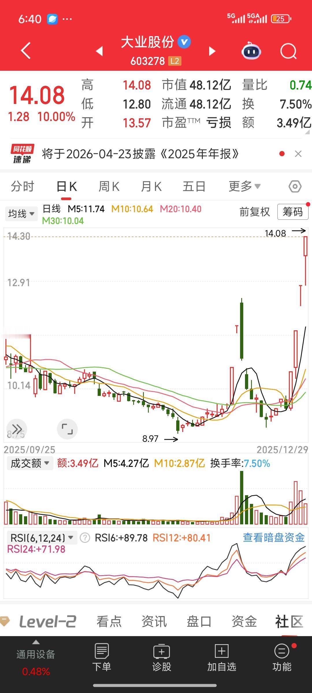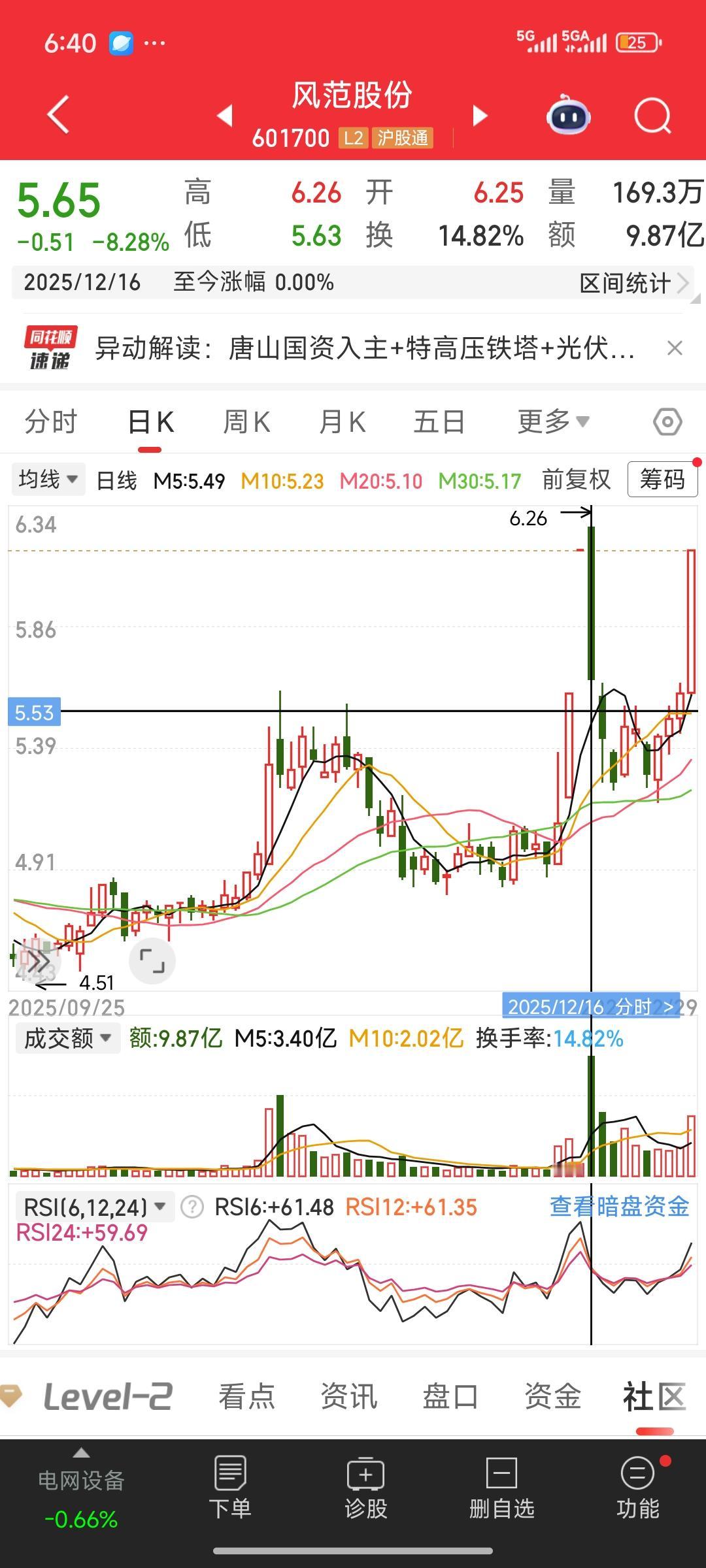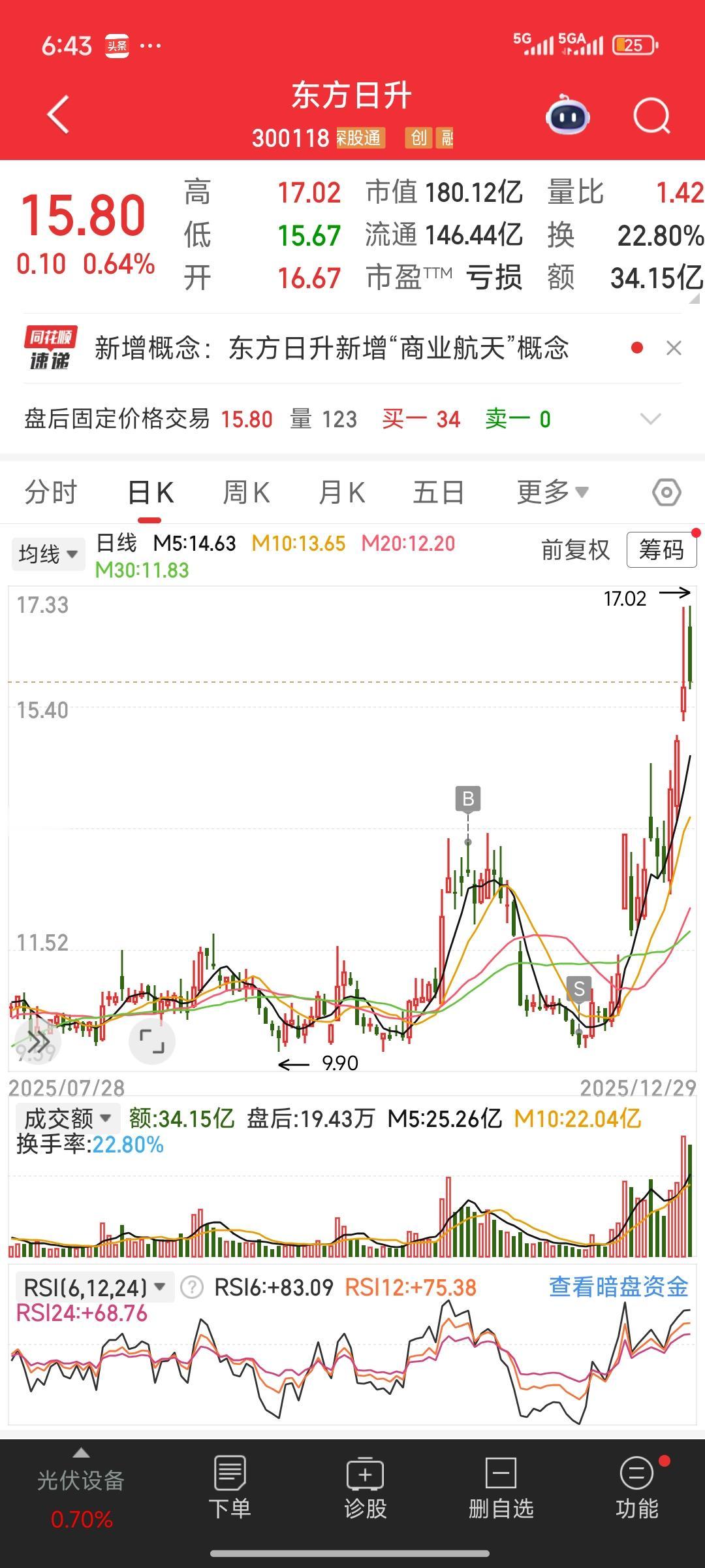 今日复盘,发现两个股票。风范股份的走势与大叶股份有些相似,都是短期拉升两个涨停,接着大幅回调、放量下跌,收出大阴线。之后,经过一个月左右的调整,便开启新一轮拉升。我估计风范股份应该还有两三个涨停,咱们拭目以待。究竟会不会呢?咱们走着瞧,看看我的判断是否准确。 如今的主力,吸筹打压手段竟如此凶残,直接击穿拉升前的底线,着实吓人。这让我想起曾买过的东方日升,它快速拉升后调整,我以为会继续上涨,便买入,结果反手杀跌,不仅跌破拉升底线,连5天均线、20天均线都破了。我只好割肉出局,没想到刚卖出就迎来大涨,如今还创出了新高。如果再多持有一个月。不但扭亏为盈,而且还可以翻一倍啊,真是拍对断腿了,拍断大腿了。 看来,对于自己买入的股票,如果其底层逻辑和公司基本面未发生变化,就不能被跌破5天线、20天线这类生搬硬套的说法吓倒。股票买卖交流