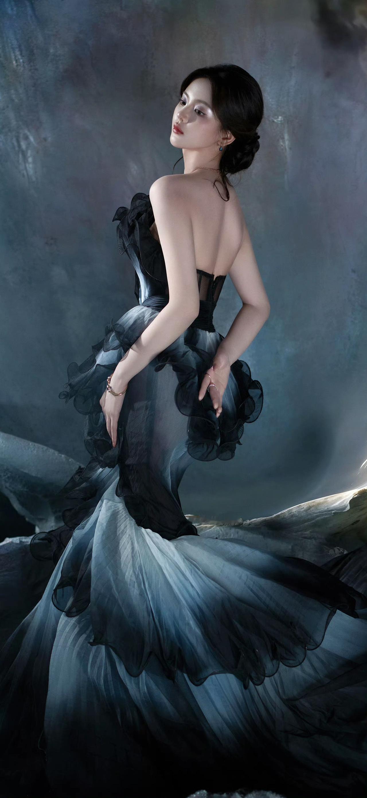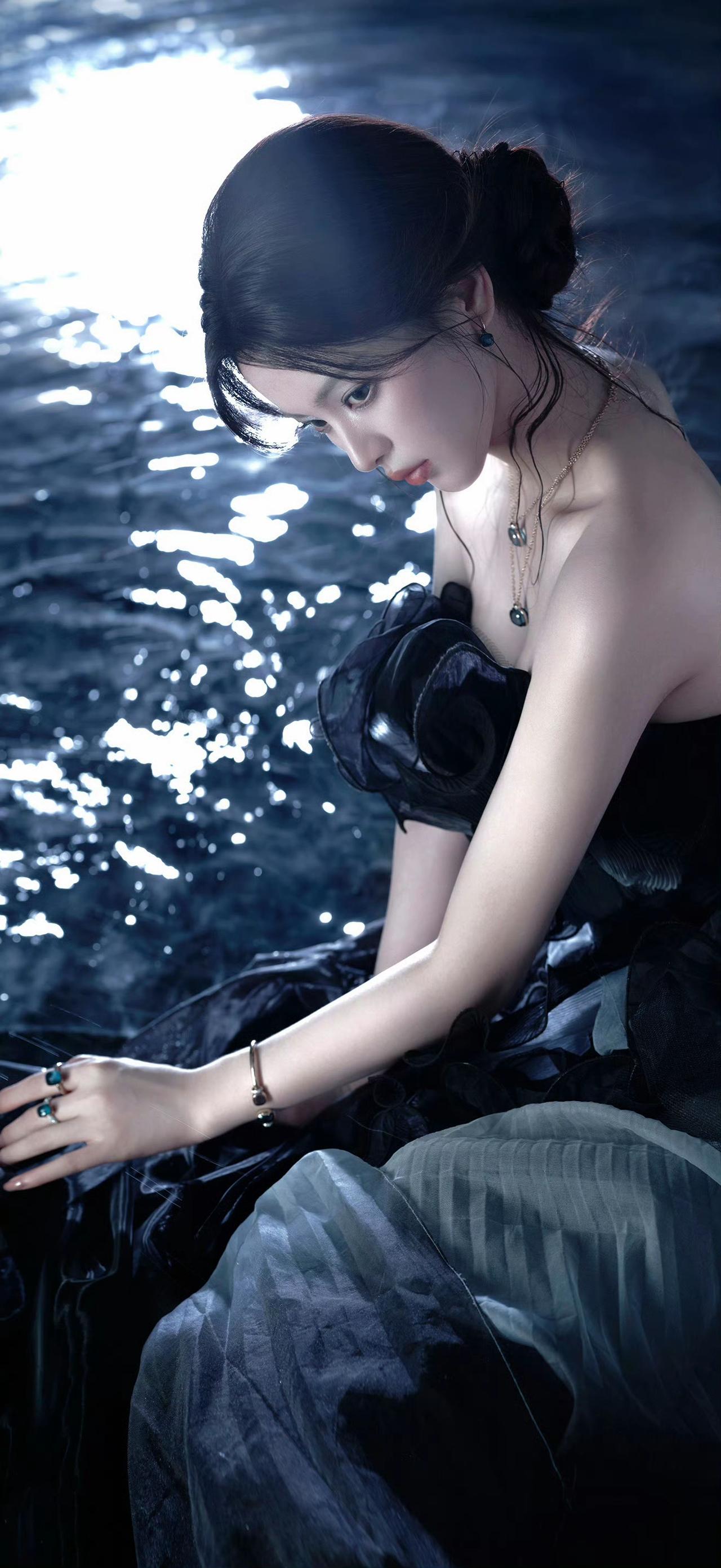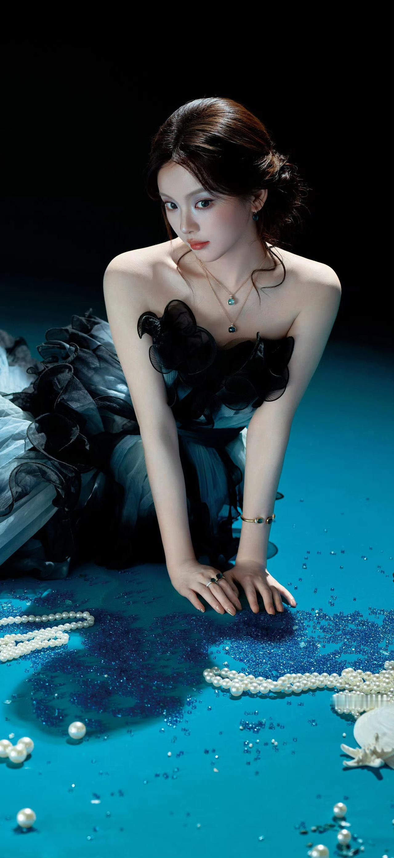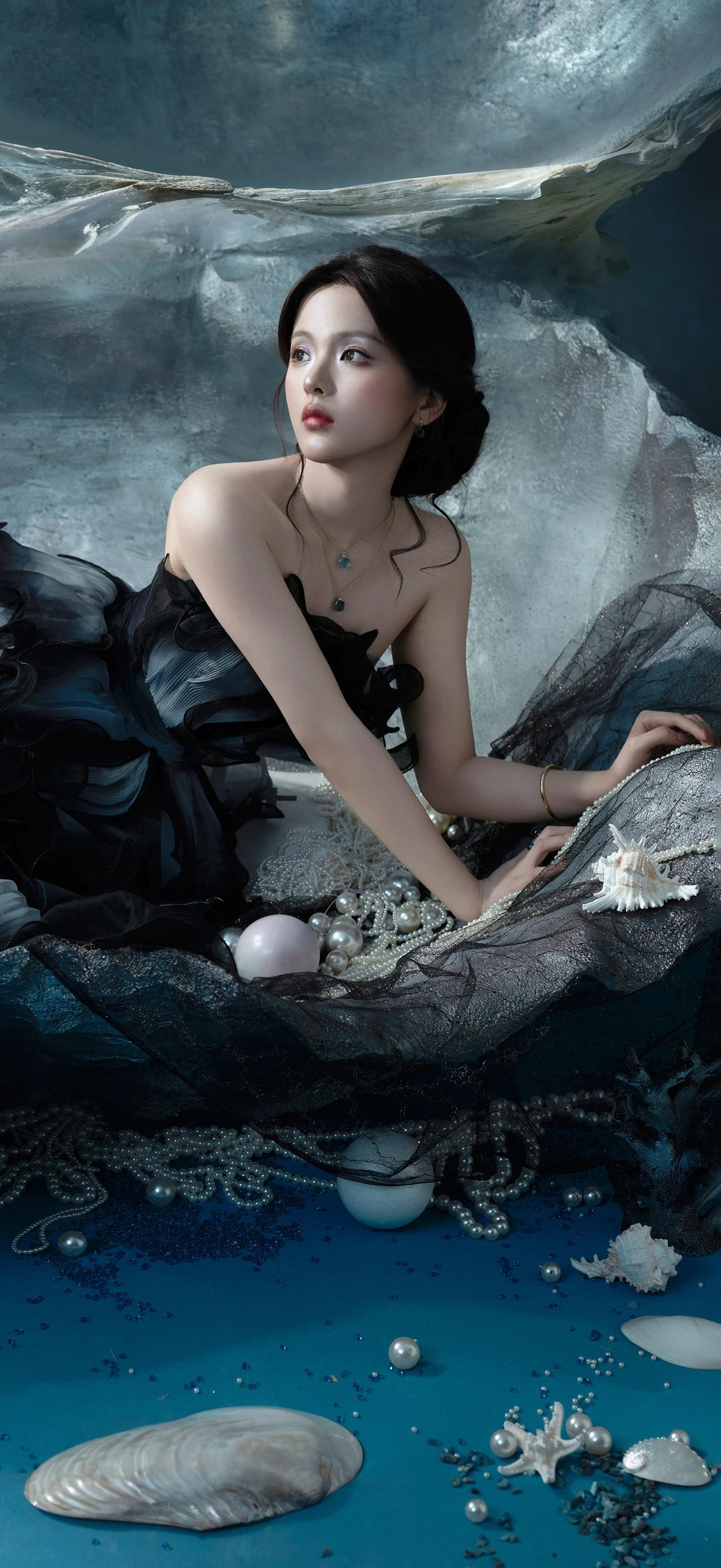 梦幻黑纱裙,优雅气质,珍珠点缀,宛如仙子降临。杨超越!