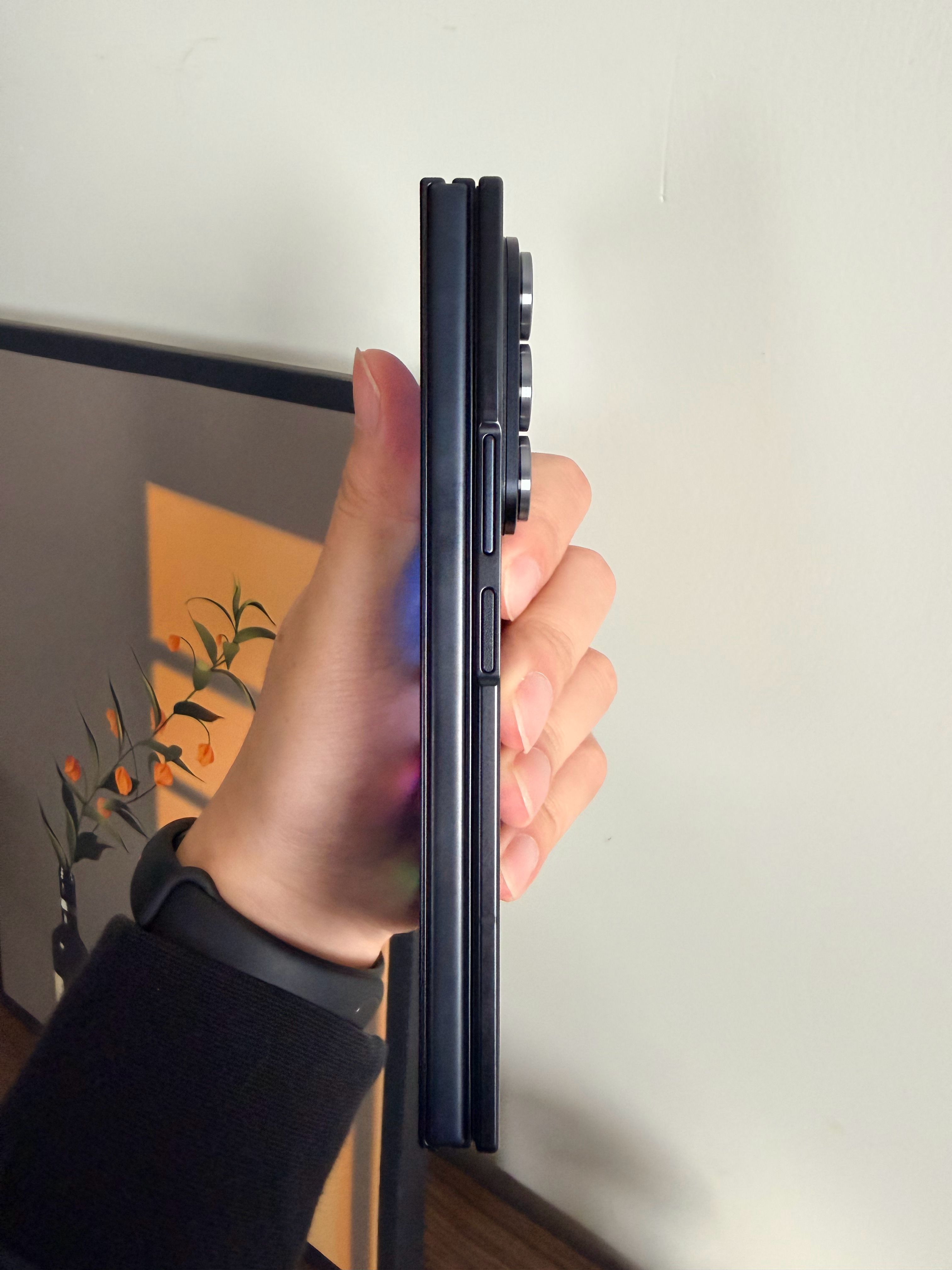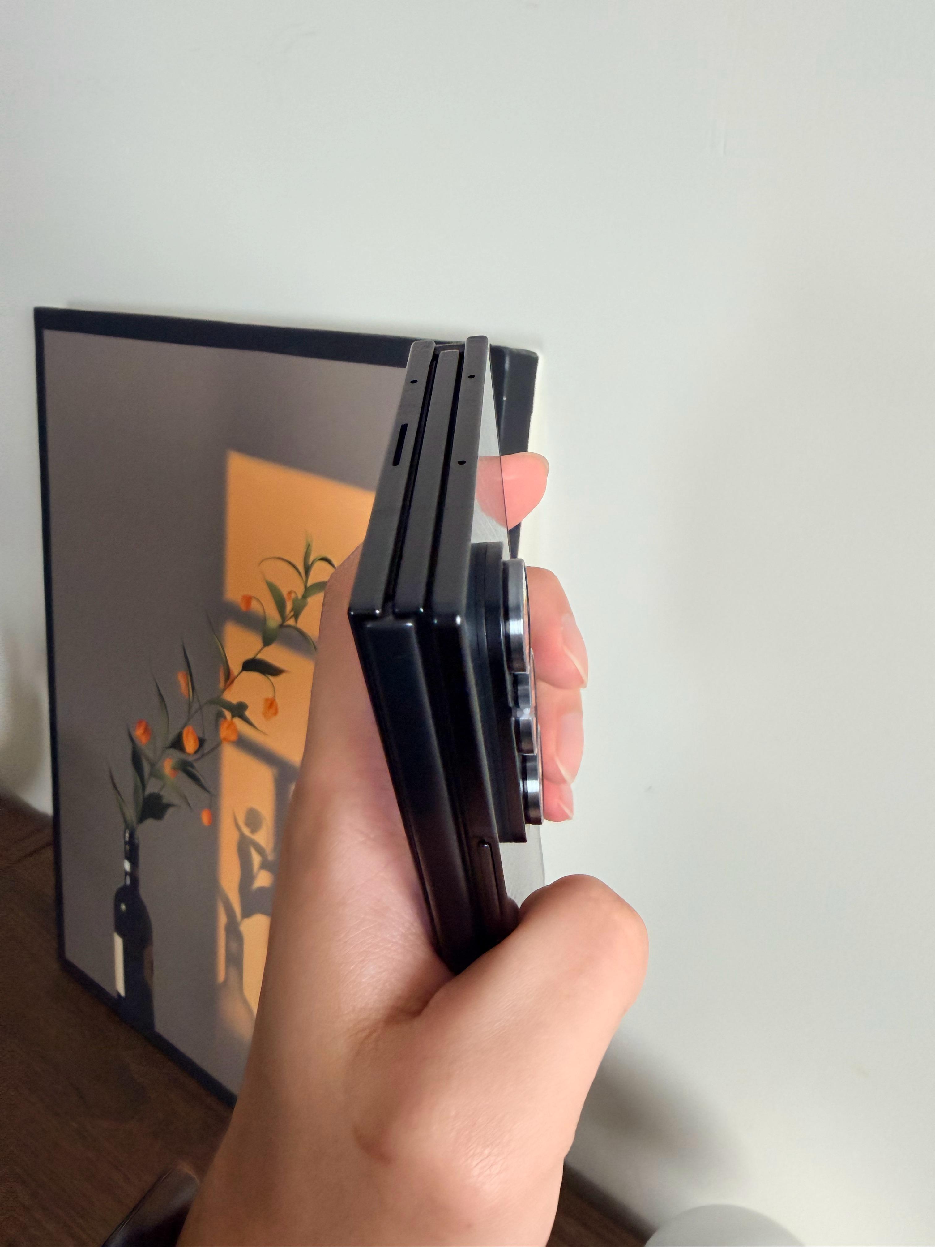 三星折叠屏简单上手,只有单屏幕或者三屏幕2种形态,折叠之后握在手里感觉非常扎实,装甲铝边框的硬度应该挺高的折起来感觉更踏实更耐用,不过缺失了双折的使用场景确实也有点可惜三星