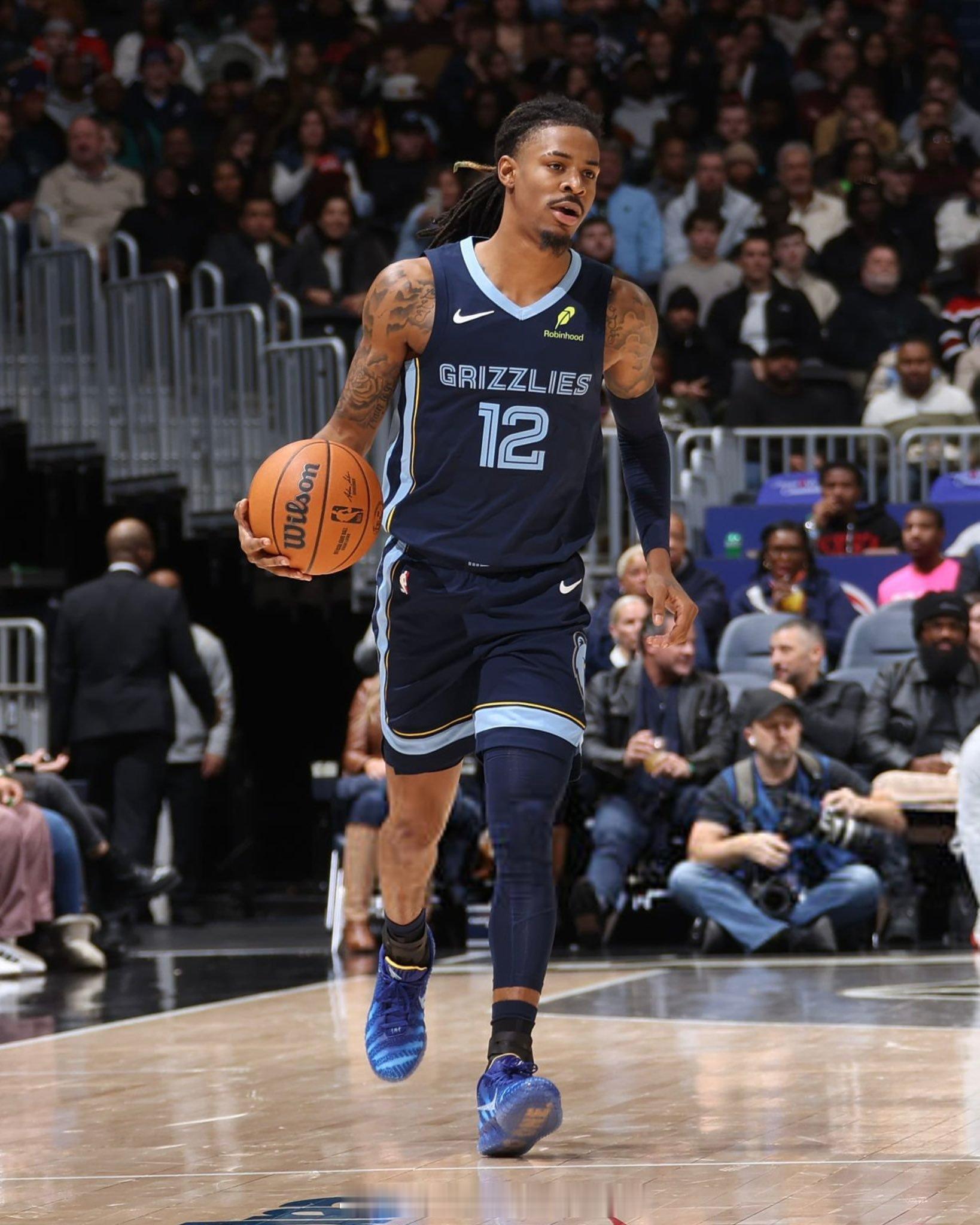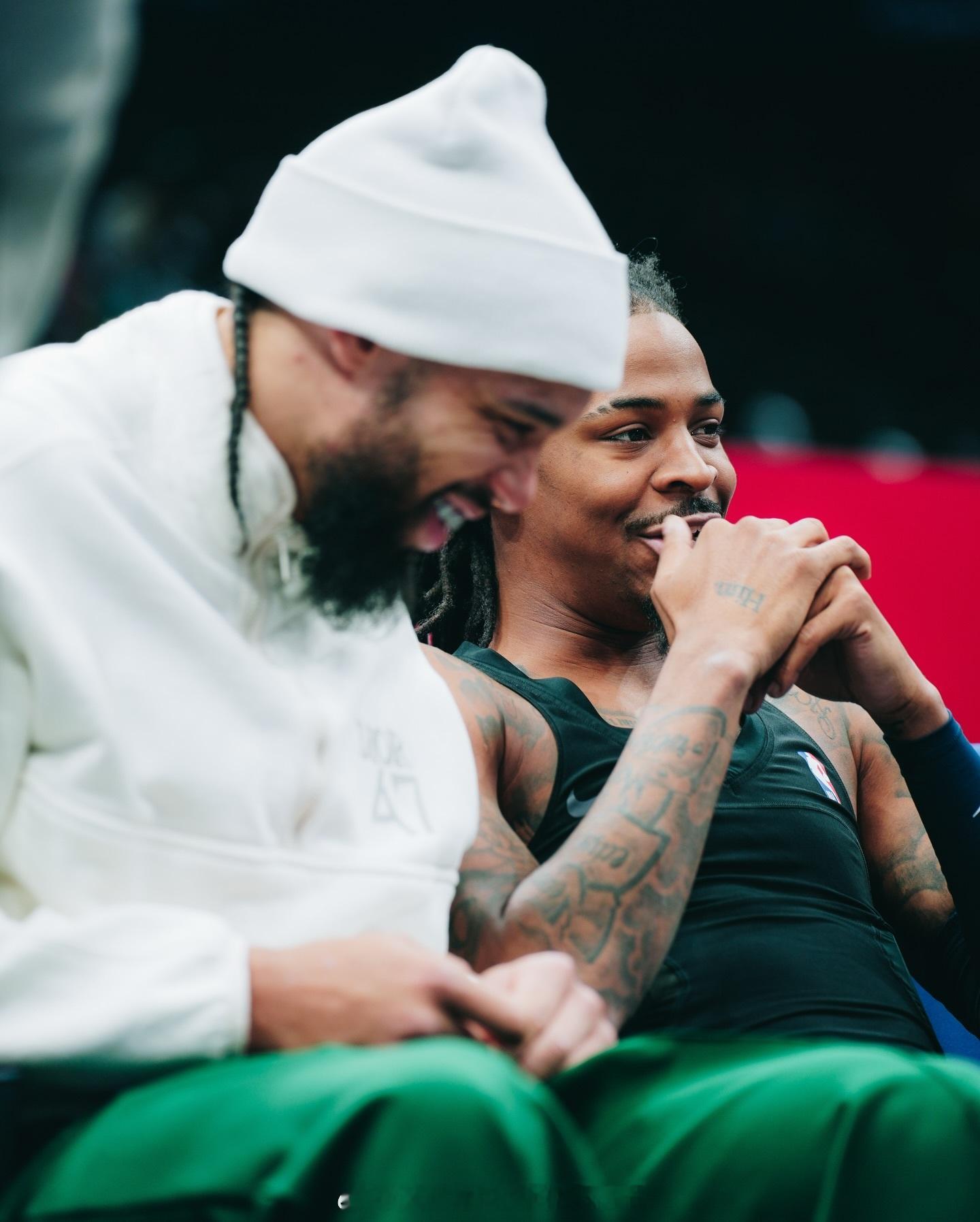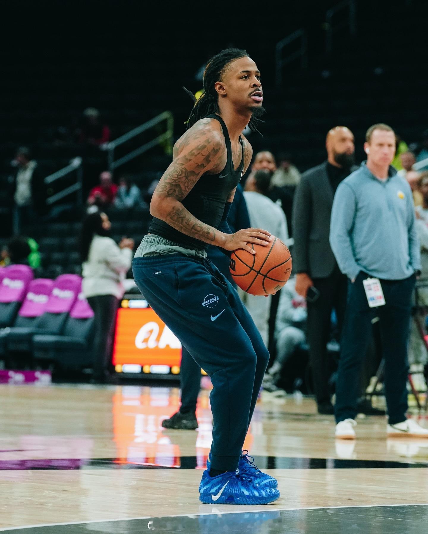 莫兰特今日赛场照 !上脚Ja 3新配色更是细节满满,莫兰特座右铭“Beneath No One”以及女儿的名字“Kaari”都展示在了球鞋中!莫兰特热爱篮不住莫兰特三代
