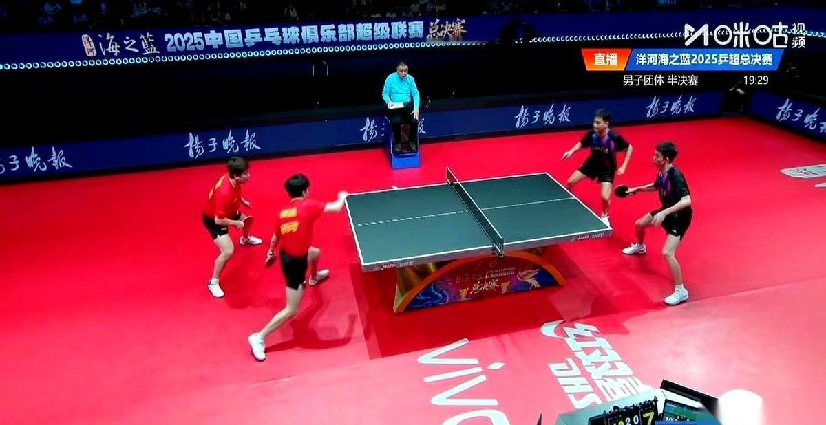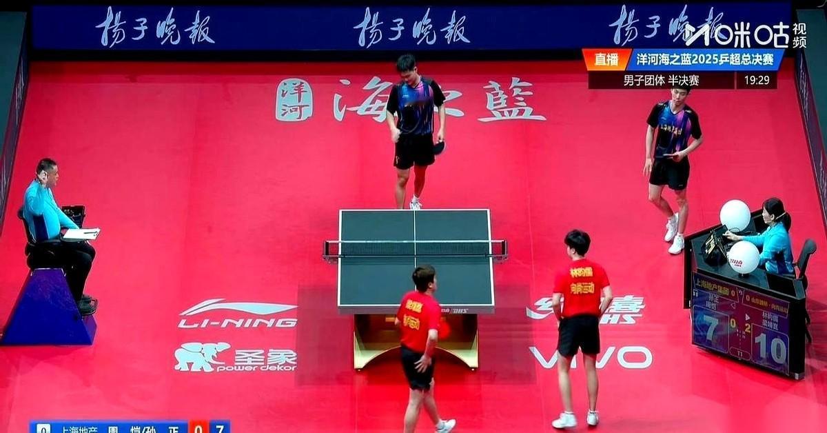 妈呀,大胖(梁靖崑)他们也太狠了。 上来就是个3-0,干净利落,直接把对面剃了个光头。 有一局比分是11-3,我寻思我上我也行,反正都是接个发球就完事儿…… 说真的,这球看着都替周恺/孙正那边捏把汗。 就感觉完全被按在地上摩擦,节奏、力量、配合,说白了,真不是一个量级的。大胖跟林昀儒这俩人凑一块儿,那化学反应,绝了。 最有意思的是啥? 是听说旁边还有个当球童的小朋友,一边看神仙打架,一边……吃凉皮? 哈哈哈哈,这画面感。 管你们场上杀得天昏地暗,我先干为敬,这才是真正的人生赢家。 山东队这配置,就是来收割比赛的,没啥好说的。 现在上海0-1落后,下一场……赵子豪要对王楚钦。 嗯…… 兄弟,顶住。
