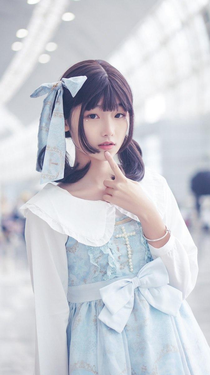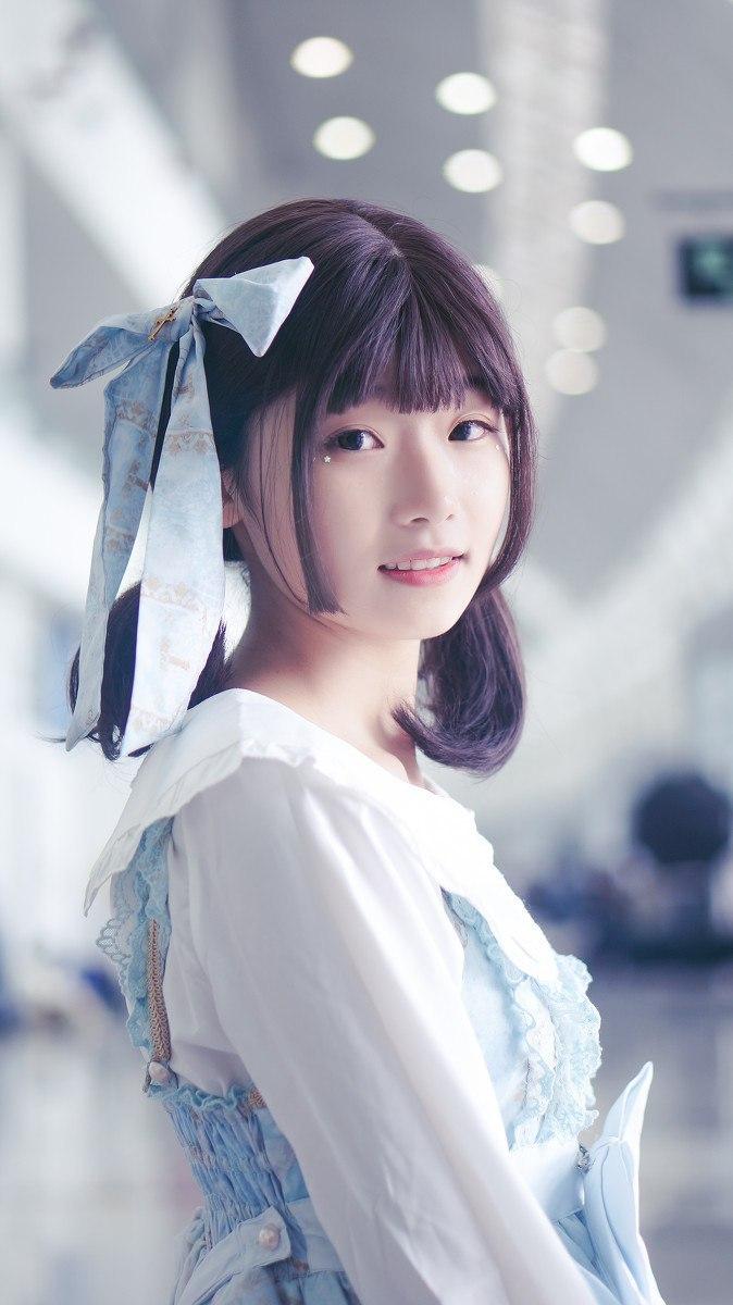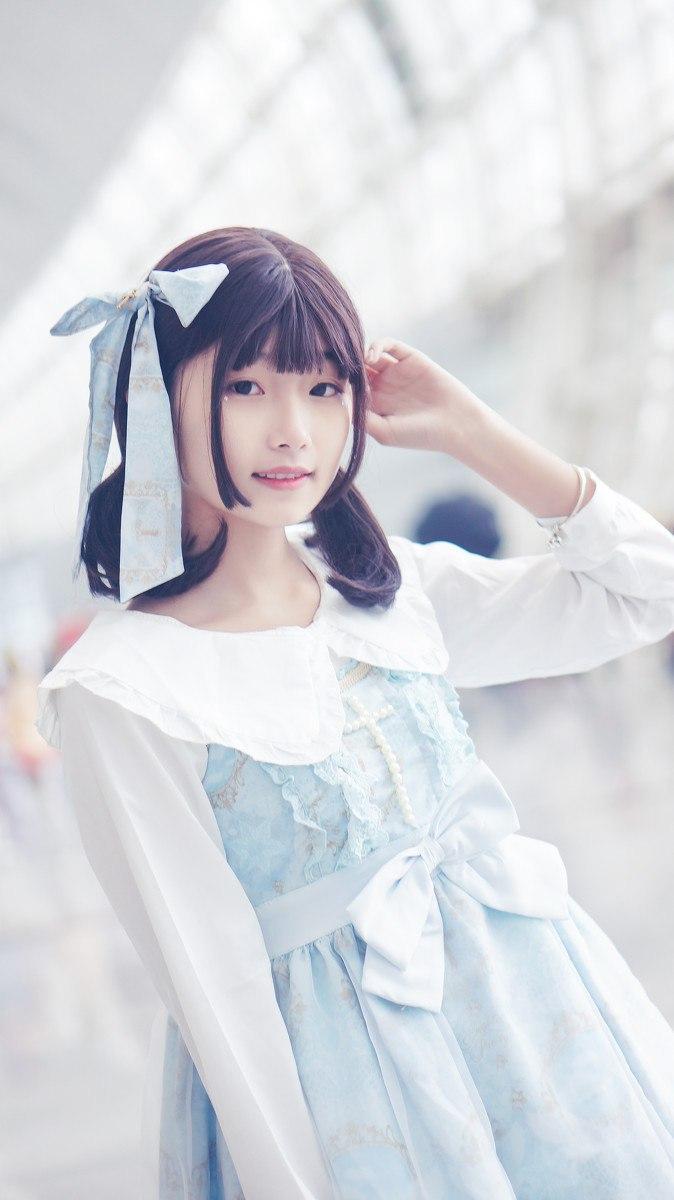 梦幻少女风浅蓝色连衣裙甜美可爱💕温柔蓝裙少女