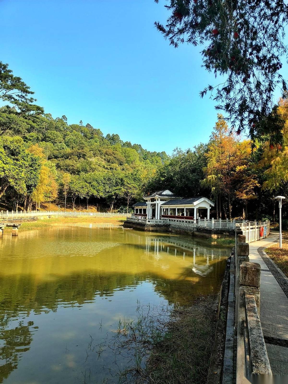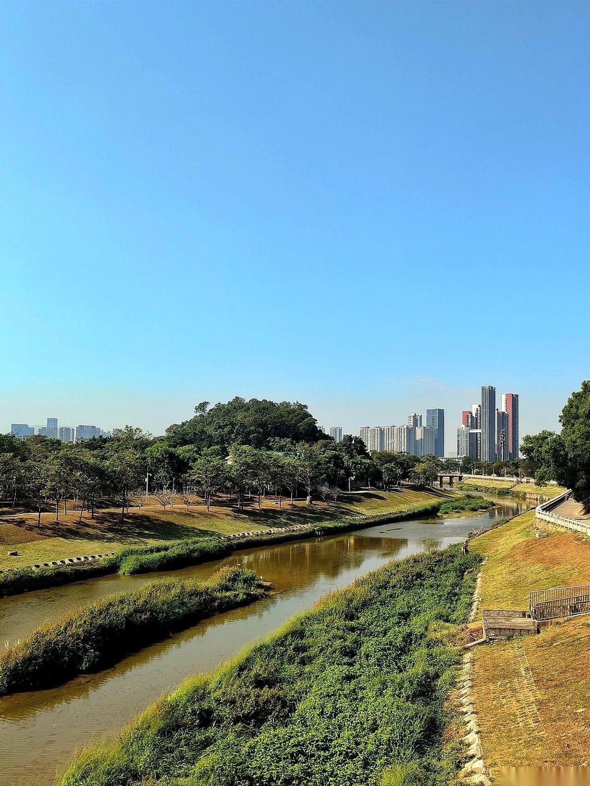 一个S形的庞然大物,就这么硬生生砸在你眼前。 这,就是还在建的深圳自然博物馆。 旁边那条彩色的云轨,像个寂寞的玩具,车厢里几乎没人。 我就是为了看它一眼,硬是坐了一个多小时地铁,从坪山广场走到沙壆,吭哧吭哧搞了8公里。 说实话,中间那段燕子岭公园,有点儿小失望。 山不高,山顶的亭子还因为掉瓦片给封了。你想登高望远看看坪山长啥样?别想了,两边全是树,严严实实。 就是个纯粹的、埋头走路的地方。 还好坪山河边那段湿地不错,有水有草坡,挺舒服的,遛娃肯定很香。 但这些都是配菜。 真正的主角,就是那个博物馆。 你站在它面前,真的会有一种感觉——你在见证一个地标的诞生。 虽然现在周围还是一片工地,人也不多。 但你能想象得到。 等它建好了,这里会是什么样。 那条现在看着有点冷清的云轨,到时候估计得挤爆。 很多人觉得坪山远,但有时候,最牛的东西,往往就诞生在这些你以为的“远方”。 今天天气一般,要是再来个大蓝天…… 啧,那画面,绝了。