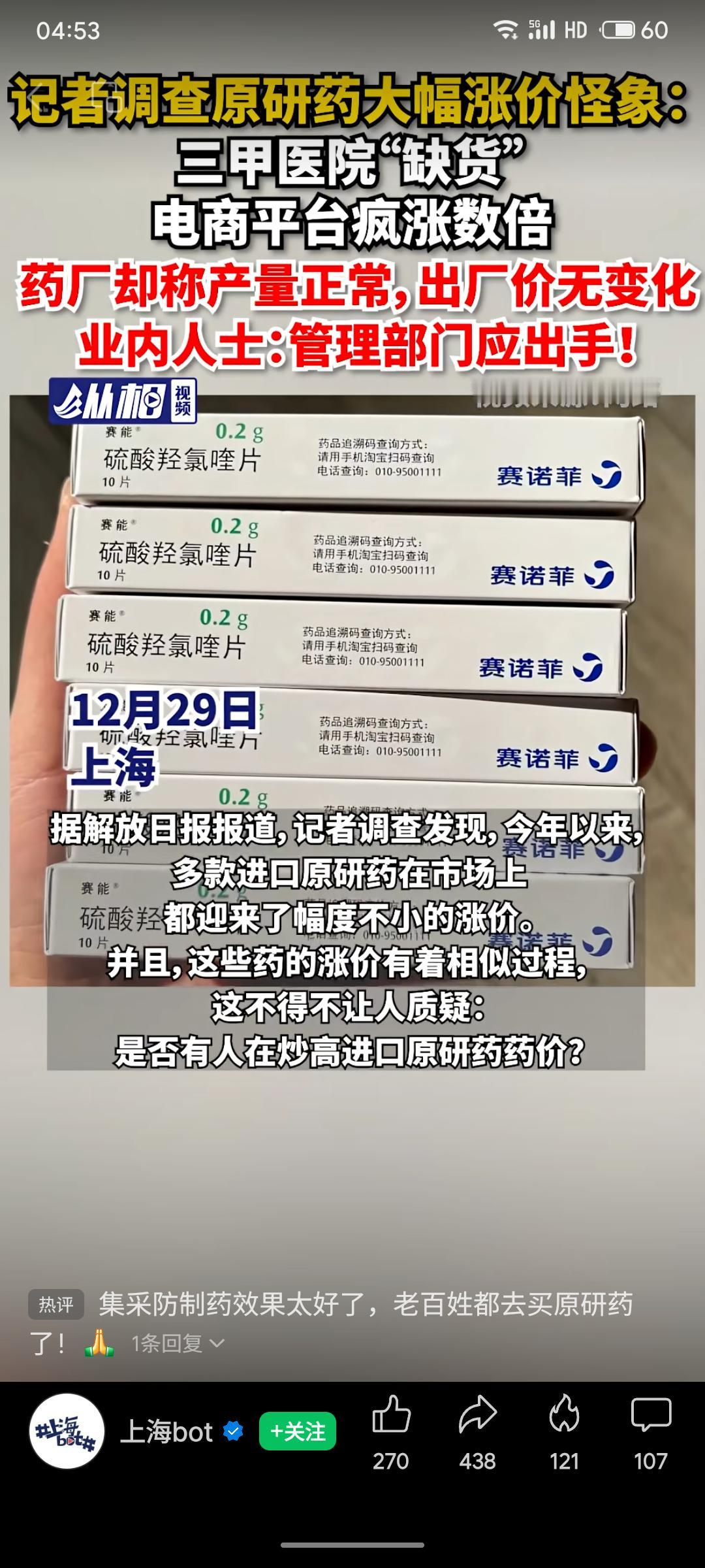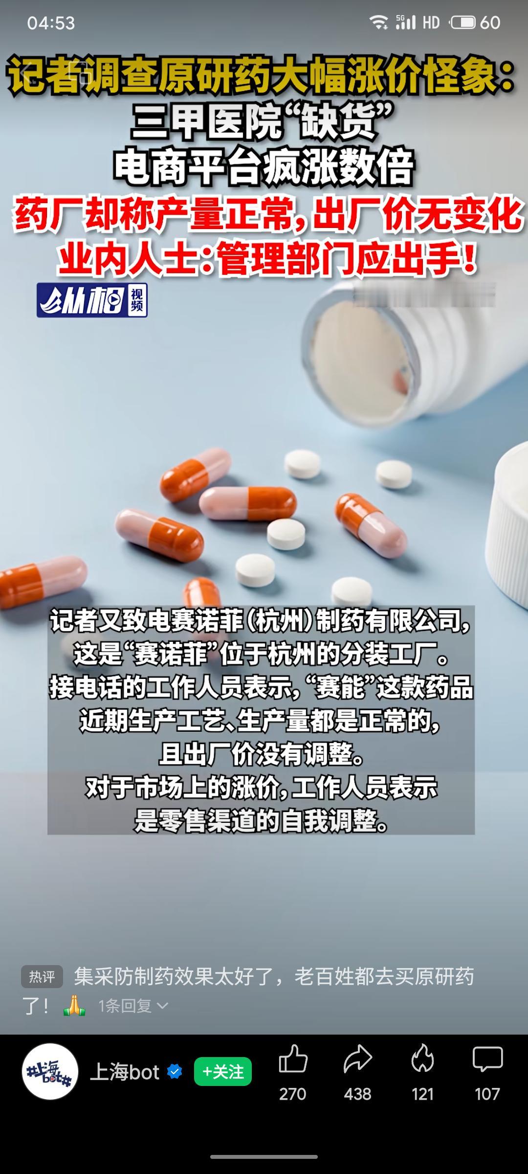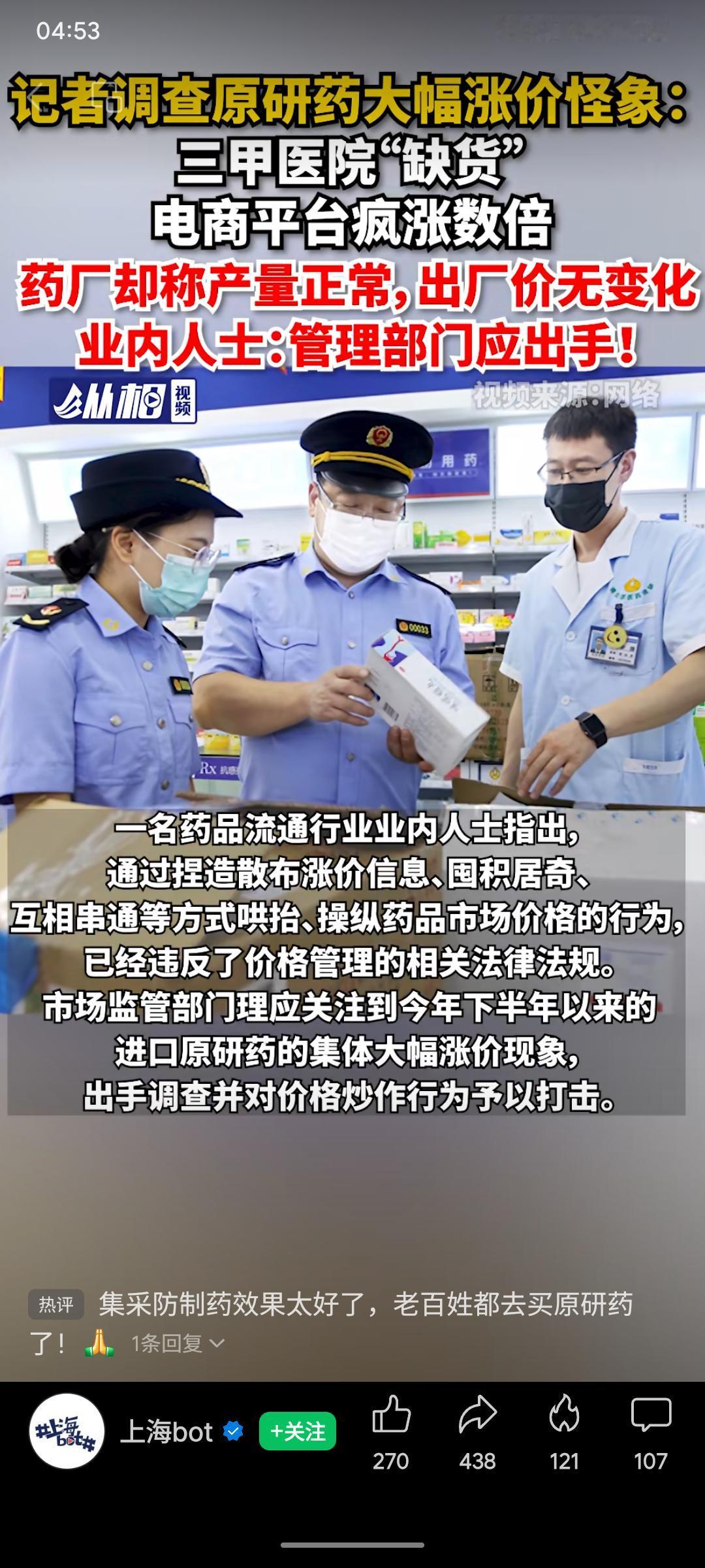 记者调查发现,多款进口原研药(如“赛能”)在三甲医院缺货,电商平台价格却翻数倍,药厂表示产量与出厂价均未变动。业内指出,这可能是流通环节囤积居奇、炒作所致,涉嫌违规操纵价格。该现象或与集采后部分患者更信赖原研药有关,暴露了药品供应与价格监管的漏洞,呼吁管理部门及时介入调查,保障患者用药权益与市场秩序。
