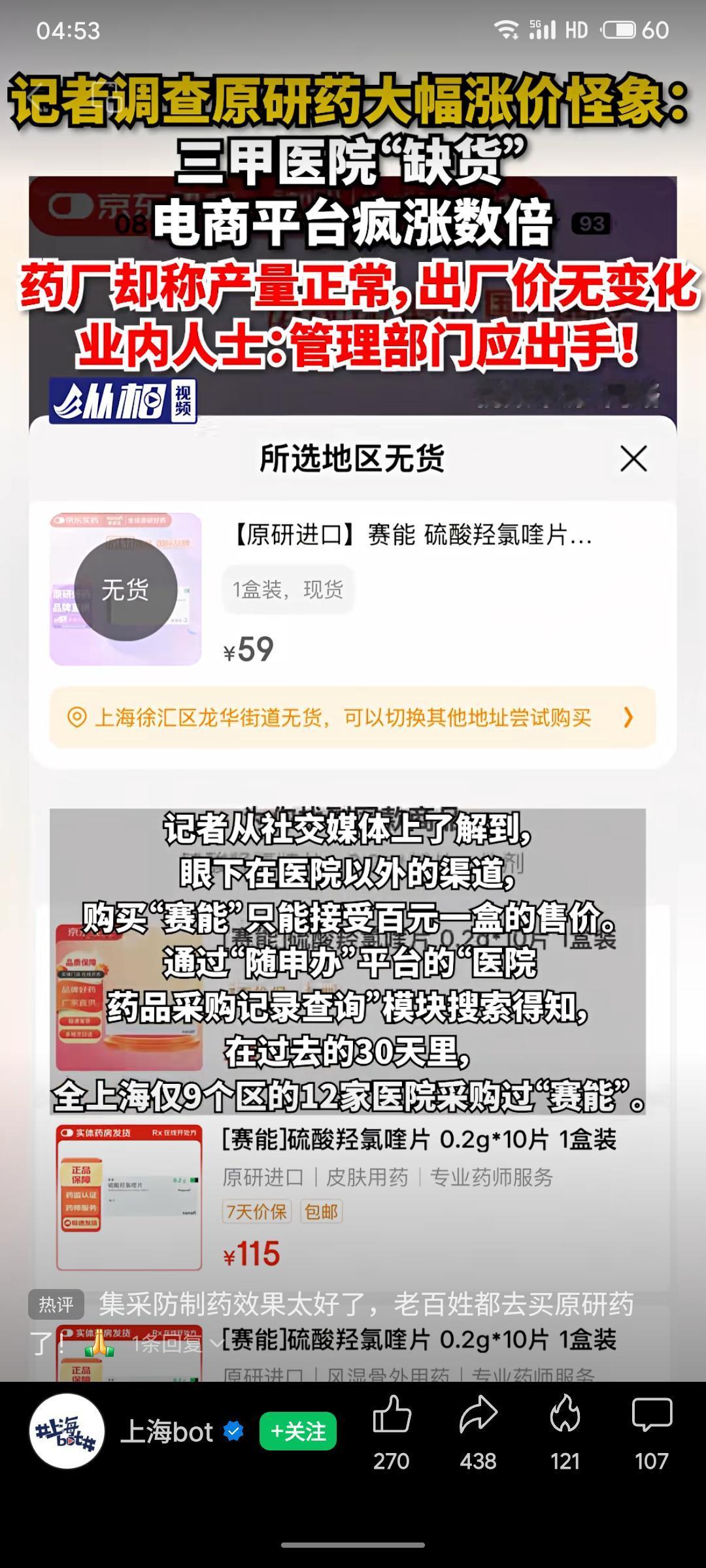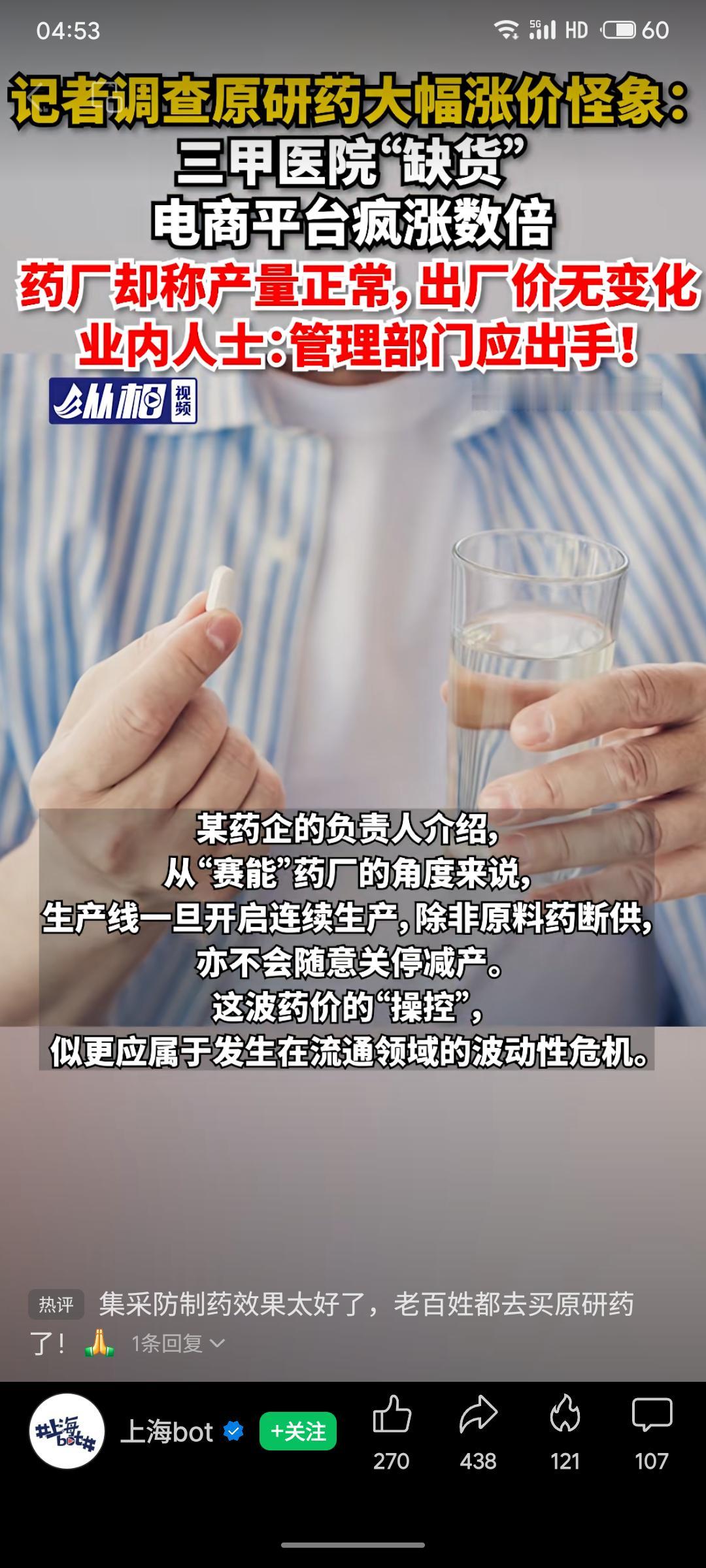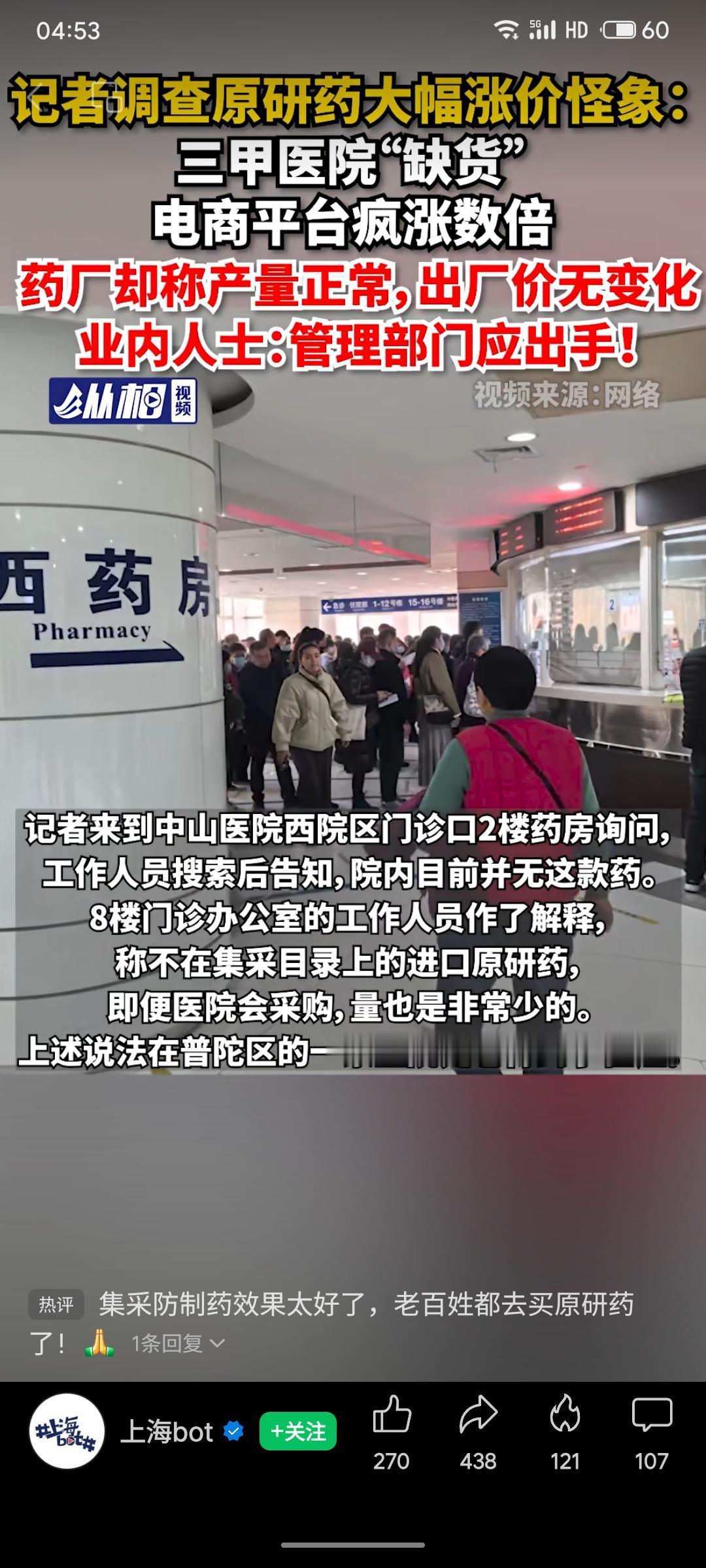 记者调查发现,多款进口原研药(如“赛能”)在三甲医院缺货,电商平台价格却翻数倍,药厂表示产量与出厂价均未变动。业内指出,这可能是流通环节囤积居奇、炒作所致,涉嫌违规操纵价格。该现象或与集采后部分患者更信赖原研药有关,暴露了药品供应与价格监管的漏洞,呼吁管理部门及时介入调查,保障患者用药权益与市场秩序。