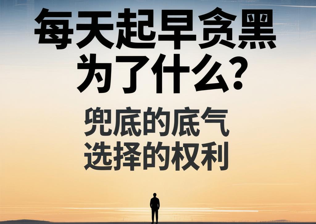 每天起早贪黑忙忙碌碌为的什么呀?每天起早贪黑图啥?说白了,就为两样东西:保命的胆子和 随时翻脸的权利 兜里有钱,老板敢画大饼、玩PUA,你敢直接拍桌子走人;家里老人病了,你能直奔VIP病房,不用在缴费窗口数着钢镚儿看脸色。这叫底气。 更重要的是“抗揍”。 这两年环境变天了吧?政策一调,行业一崩,谁最慌?是没存款、一身债的“脆皮”打工人。 你起早贪黑,不是为了当一辈子干电池,而是为了在时代的洪流冲过来时,你自己手里有块木板,能漂起来,甚至造艘艇。 别信什么“躺平”。 手里有粮,心里不慌。当你不想干了、想出去透透气、或者单纯想对烂人说个“不”字的时候,钱,就是你最大的武器。 这才是成年人世界里,最顶级的自由。