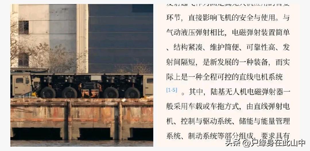 什么叫做机动式陆基电磁弹射车? 这玩意是能拼的,弹完了分开就走了,垂直起降越来越像小丑了...如果这几辆车放到民用船上,那不是每艘船都是小号076啊? 临时机场,只管起飞不管降落,具体用途... 现有的高清照片能看到,挂着的无人机前轮上明显是弹射器动子,之前大伙儿都当成挡轮去了。【图3】 陆地航母,汉地行舟! 铁锁连车,如履平地! 老美:当初不是说好了讲我垂直起降天下无敌的嘛?