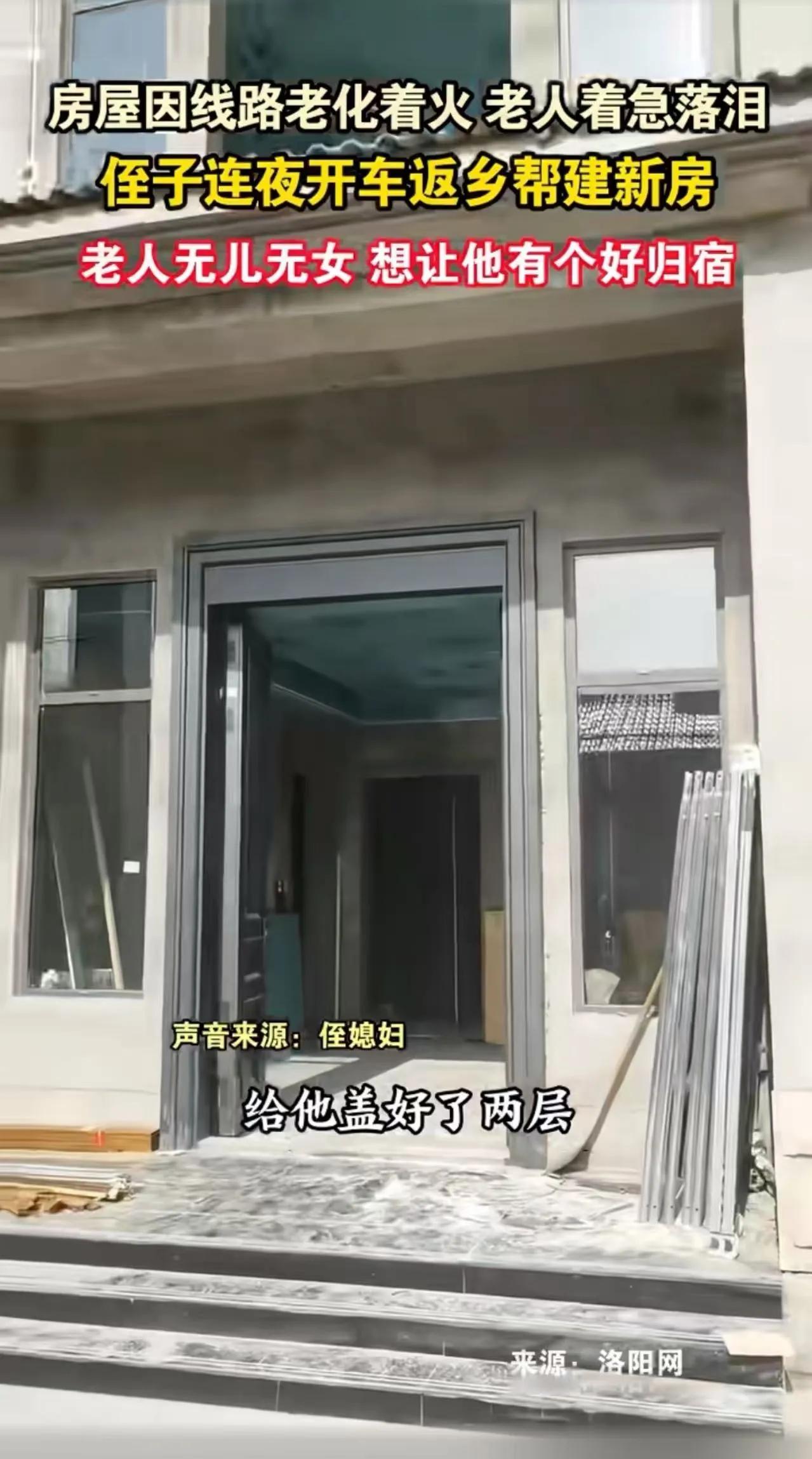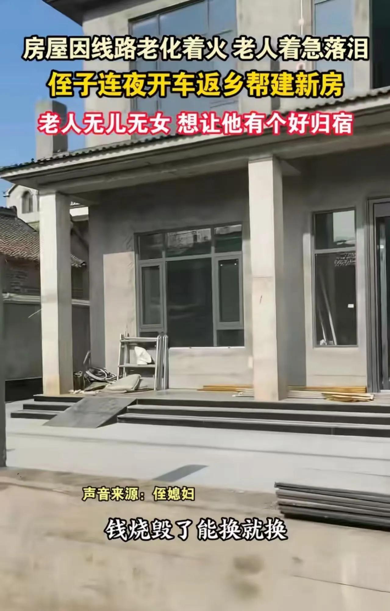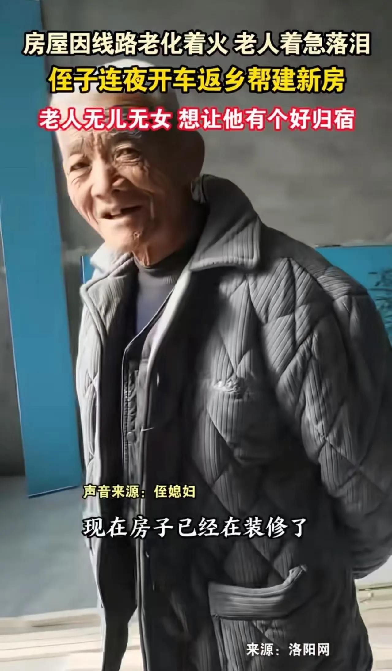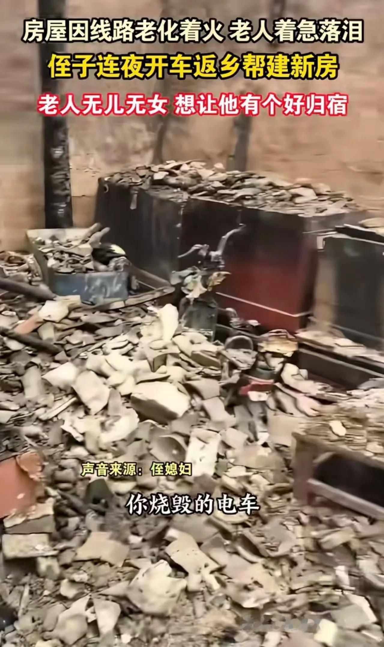 “侄子门前站,就不是绝户汉”!河南周口,老人无儿无女,房屋线路着火,老人着急落泪,一夜没睡。侄子听到消息,连夜开车返乡帮建新房!侄子:“他没孩子,我就是他的孩子,想让他有个好归宿!”网友:侄子是好侄子,侄媳妇才是宝! 这是一幕温暖人心的乡土情深,也是一份令人动容的家族责任感。在这个快节奏、竞争激烈的时代,许多人都在忙碌追逐自己的梦想,却忽略了身边那些最需要关怀的人。而在河南周口的这个普通家庭里,一场突如其来的火灾,点燃了人们心中最纯粹的亲情火焰。 老人无儿无女,孤独地站在门前,看着家园被火焰吞噬,眼眶湿润,泪水滑落。或许在他心中,早已没有了盼望,但他的眼神中,却依然藏着对未来的期盼。这个时候,侄子赶到,毫不犹豫地放下手中的工作,连夜开车赶回家,只为帮老人建起一个温暖的新家。有人说,侄子“就是他的孩子”,这份血浓于水的亲情,让人心头一暖。 而网友们纷纷点赞:侄子是真正的好侄子,懂得什么才是家庭的责任与担当!更有人调侃:“侄媳妇才是宝,家庭的温暖靠她守护。”这句话虽带点调侃,却也折射出家庭中那份细腻而深沉的爱。 我们不禁要问:在这个物质至上的社会,多少人还记得那份最纯粹的亲情?在面对突如其来的灾难时,是谁伸出了援手?这不只是一次简单的救援,更是一场关于责任、关于爱的教育。它告诉我们,无论身处何地,无论身份高低,关心和守护家人,才是真正的幸福所在。 更值得反思的是,社会对孤寡老人、弱势群体的关怀还远远不够。这个故事提醒我们:每一个家庭都需要一份温暖的力量,每一个人都可以成为别人的“依靠”。我们或许无法改变整个世界,但可以从身边做起,从点滴做起,让爱成为社会的主旋律。 这场火灾,带走了房屋,但没有熄灭那份最真挚的亲情。它让我们看到:在这个世界上,最珍贵的,永远是那些看似平凡却无比伟大的责任与爱。希望每个人都能像那个侄子一样,用行动去守护家人,用心去温暖社会。因为,真正的幸福,源自于你我心中那份不变的责任感和爱。老家侄子 无子绝户户