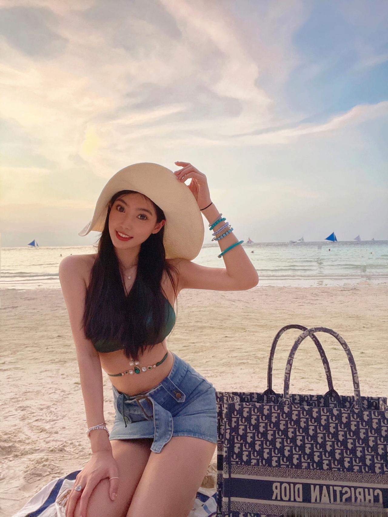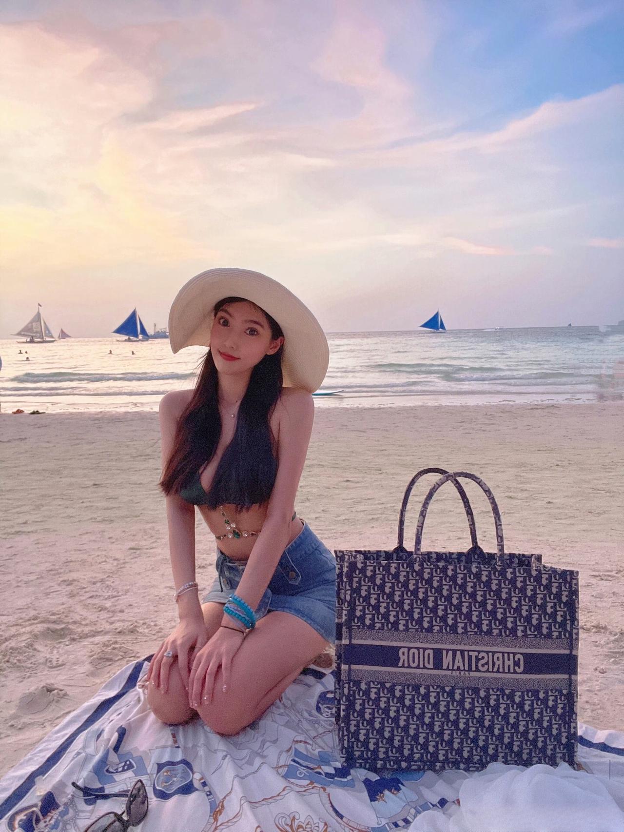 夕阳下的沙滩,像被撒了一地的碎金。上热门 海边拍照 穿搭 御姐