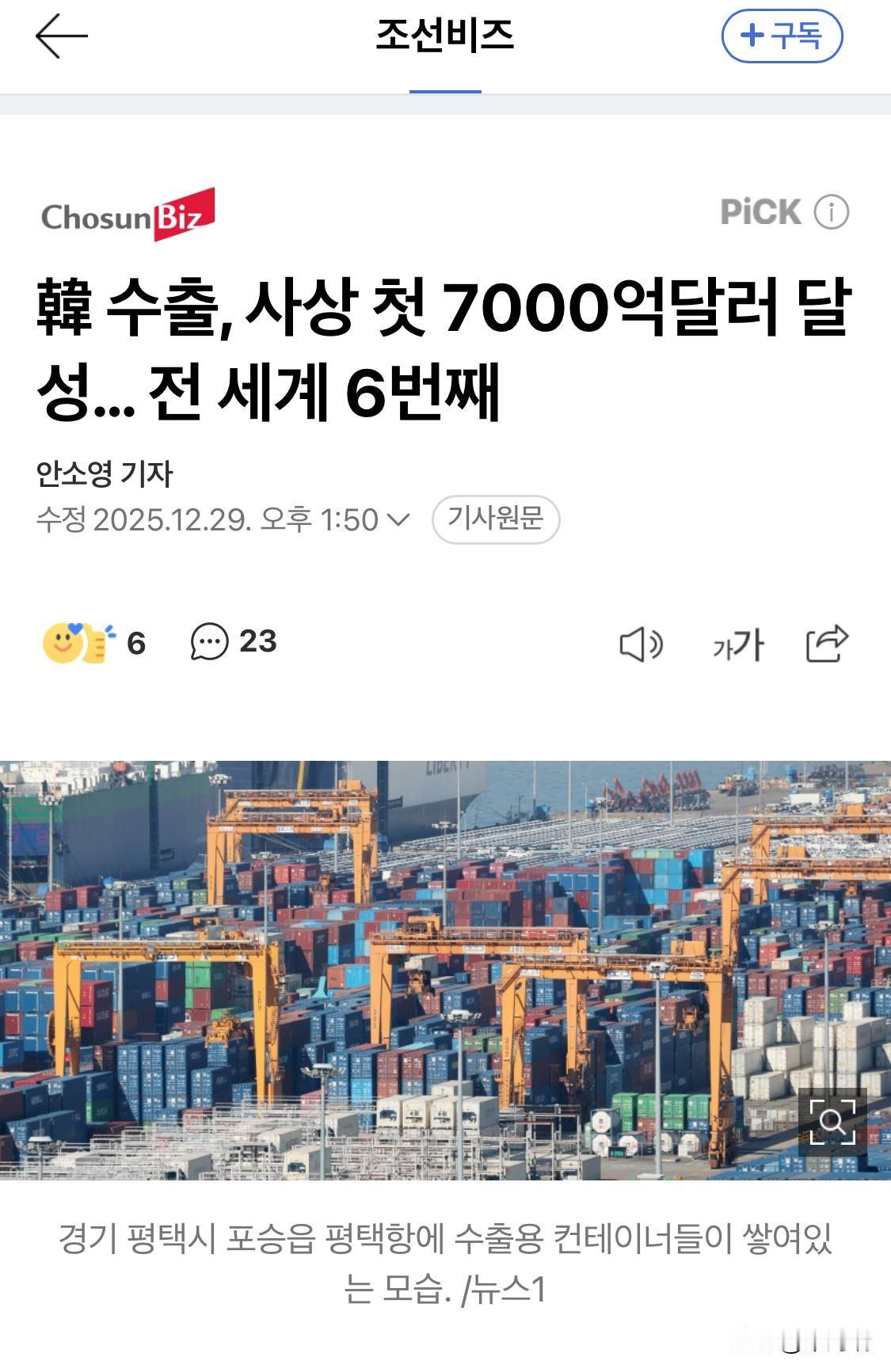 韩国产业通商资源部周一表示,今年韩国出口额首次突破7,000亿美元。截至周一上午12点03分,韩国出口额已达到7,000亿美元这一里程碑。作为亚洲第四大经济体,韩国出口在2024年创下历史新高,达到6,836亿美元,同比增加8.1%。今年1-11 月份的累计出口额为 6,401 亿美元。12 月份全月数据将于周四公布。 韩国出口额于1995年首破1000亿美元,2011年突破5000亿美元,2018年突破6000亿美元,历时7年再次跨越千亿量级门槛。 韩国政府已设定目标,力争在2026年继续保持出口额超7000亿美元的水平。