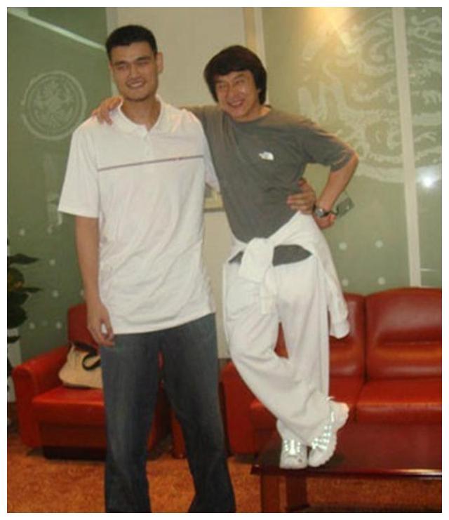 成龙不矮呀,但和姚明合影他站在椅子上也才到姚明耳朵边。成龙功夫高,姚明个高,好想看他们两人比武。