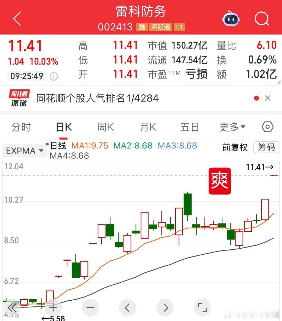 雷科防务002413.令天直一字板,强势三浪格局局延续,继续等待,年前大福利,恭喜吃上雷科这肉的粉丝们朋友,看到吃饭肉的朋友能,只有一个小小要求,帮忙点赞评论168,谢谢一大早就下了下班了,心情真好。正所谓坚持就是胜利,$雷科防务 sz002413$