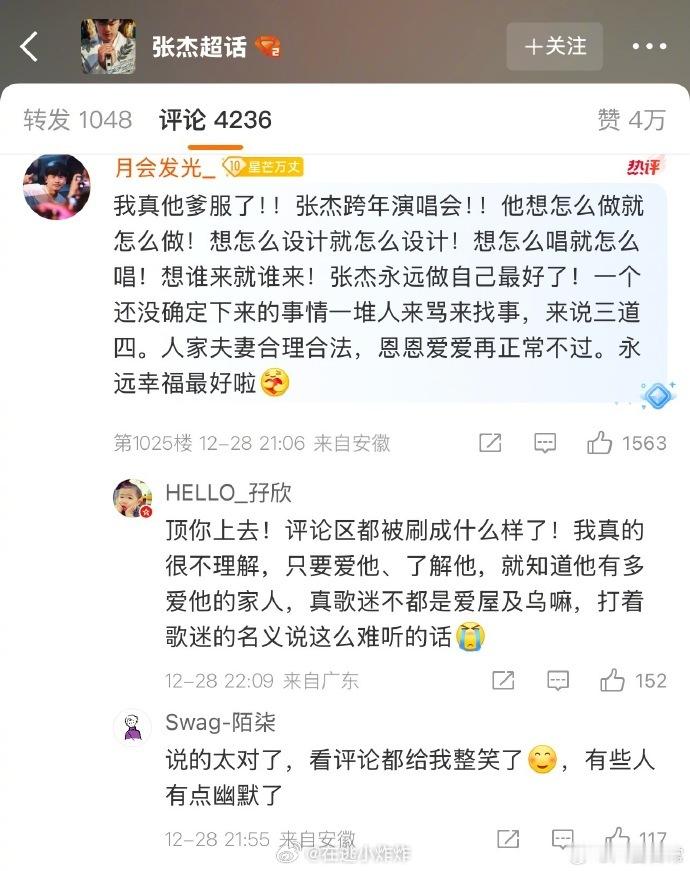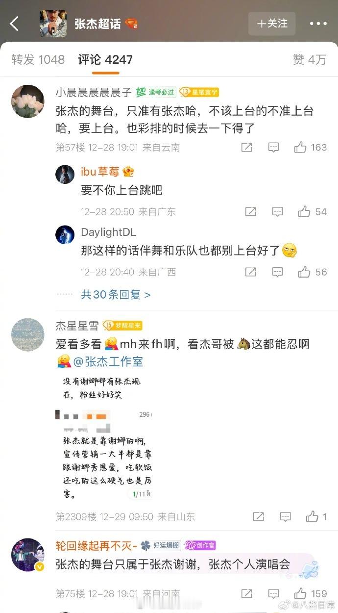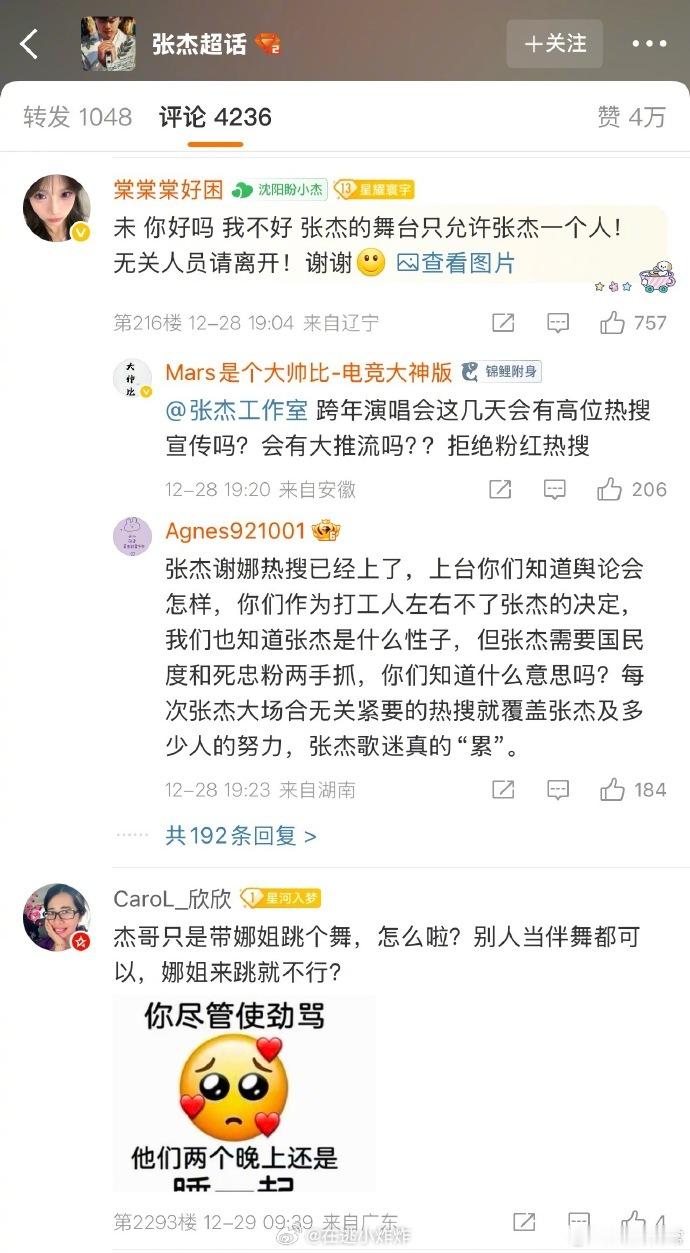 追星人没有照顾嫂子的义务吧网友也别替他洗了“谁不想跨年跟家人在一起啊”那为什么还要办跨年演唱会呢?粉丝也没不让家人在台下陪伴吧上台工作,下台团聚,陪伴并不影响事业,其他人不都这么干的吗“演唱会请个嘉宾咋了”人家请的都是歌手、乐队张杰请个女主持+老婆谢娜在音乐领域,有什么专业性的代表作吗她有自己的乐迷、歌迷吗粉丝花了钱来看演唱会拒绝关系户蹭舞台,拒绝花钱看偶像的家长里短,有什么问题吗张杰演唱会谢娜将同台网友吵翻