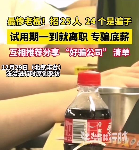 招25人,24人是骗子。 这回是玩鹰的被鹰啄了眼。 不少公司把试用期玩成了白嫖劳动力的套路,压低试用期工资、随便找个理由辞退、甚至克扣薪资,揣着明白装糊涂钻规则空子,觉得求职者都是任人拿捏的软柿子。结果这回碰上了对手,这帮人比老板还懂钻空子,挂职好几家公司混底薪,建群互通好骗公司情报,熬到试用期结束直接拿底薪走人,把老板那套“低成本用人”的算盘,打得稀碎! 两边都没安好心,最后闹了个双输的笑话,老板赔了底薪没招到人,骗子赚了小钱丢了信誉,倒是把职场那点畸形的潜规则,扒得一干二净。 要是公司都规规矩矩按劳动法办事,给足薪资、明确考核,哪还有这些骗子的生存空间?毕竟,没人愿意顶着骂名骗那点底薪,但凡有正经出路,谁愿意当职场老赖呢?