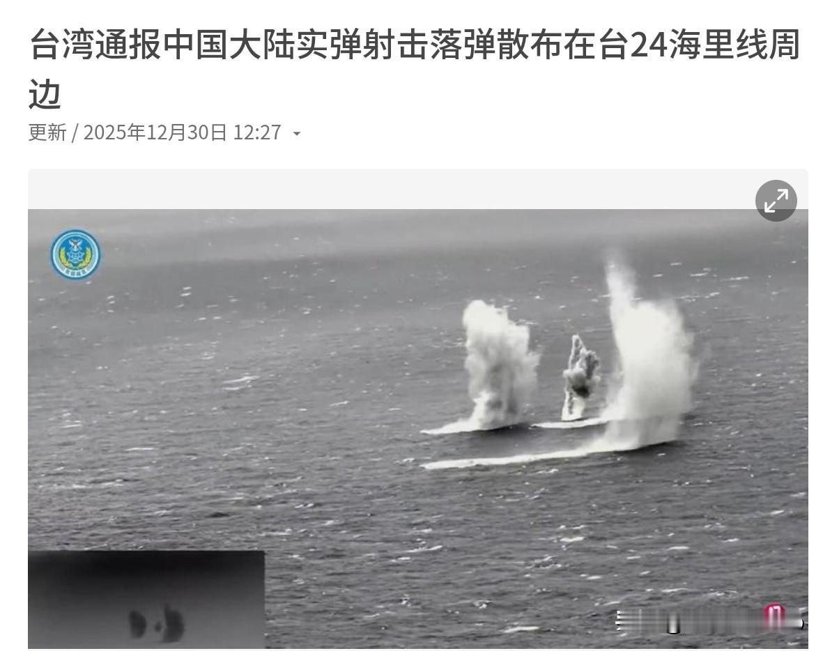 解放军实弹射击落点是真准,岛内防务部门负责人顾立雄非常愤怒,且感到憋屈!12月30日,根据联合早报报道,今天上午九点,解放军进行了远火射击,而岛内防务部门表示,中国大陆实弹射击落弹精准的散布在台24海里线周边。对此岛内防务部门负责人顾立雄表示,大陆军方高度挑衅的冒进行为,不但“严重破坏”区域和平稳定。 也对往来的运输船只、贸易活动、飞行航线,形成重大安全危害与干扰。军方将依赖清德指示的“不升高冲突、不挑起争端”指导原则,沉着冷静应对,坚定守护台湾国安与民主自由。此种“无视”国际规范,径以军事手段“恫吓威胁”的手法,显然是意图以复合式军事、非军事手段,达到认知作战、消耗我战力的目标,我方将完善各项应对行动。 很显然,解放军进行实弹远火射击,且精准落在24海里周边,这无疑是计算好了的。我们这就是警告民进党当局,这一次是24海里,下一次可能就是12海里了。事实证明,我们的PCH191火箭炮,确实能够做到指哪打哪,并且还是量大管饱的。顾立雄一方面跳出来对我们进行指责,一方面却声称遵照赖清德指示的不升高冲突、不挑起争端原则应对,这说明岛内台军心里面是何等的憋屈! 无疑,面对我们的军演动作,岛内不敢采取强硬手段进行应对,事实是明摆着的,如果发生擦枪走火事件,弄不好统一就提前启动了。岛内面对的局面就是,外无援军,台岛被围成了铁桶阵,岛内也就剩下嘴硬,用嘴炮对我们进行回应了。很显然,这就是赖清德挑衅的后果。赖清德挑衅一次,我们就大幅度向前推进一次,统一无疑正在以势不可挡之势,向前推进。