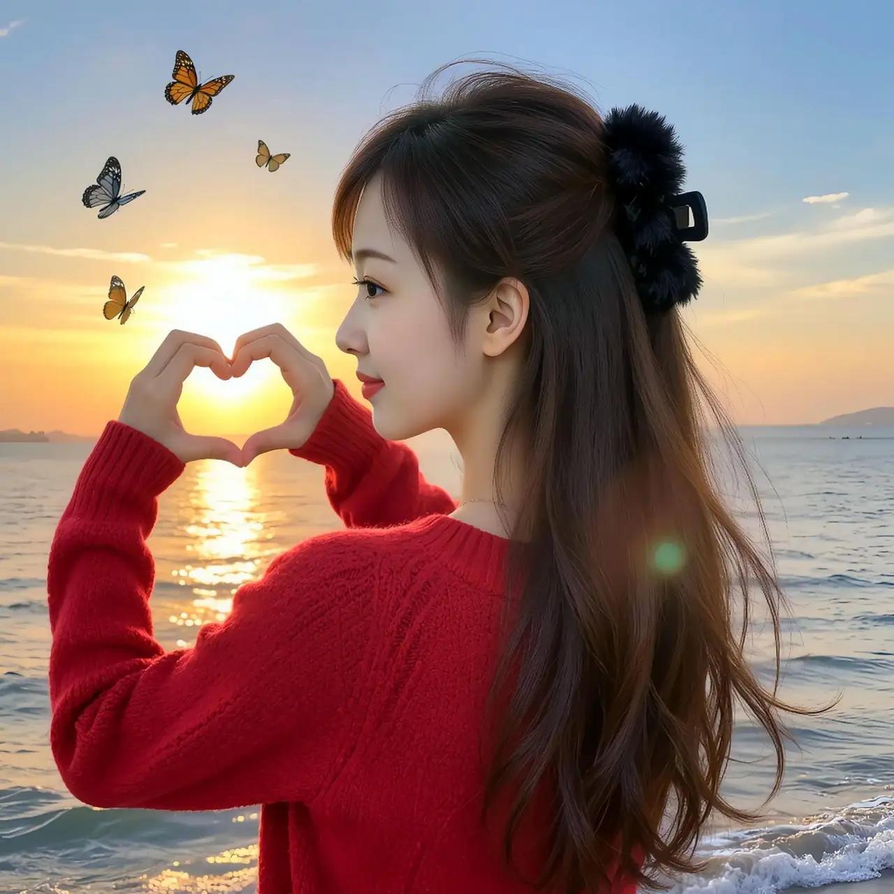 海边日落,少女心爆棚的瞬间…心随蝶舞随风扬🌅💖🦋
