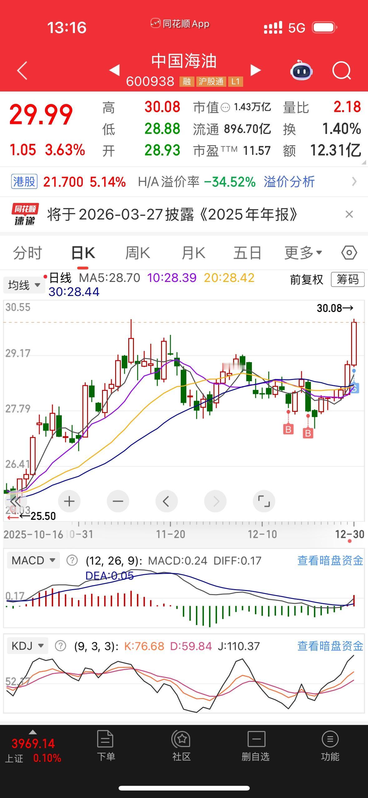 海油总给人惊喜! 看到海油涨得这么好,又送钱来了,就少卖点儿吧。不能总把持着股权,不给别人机会。 海油这只股是我的重仓股,一般是不卖的。但涨得太好时,也换点儿零花钱花花。 今天的石油三巨头又是联袂大涨,老登股也不是大家说得没有成长性。