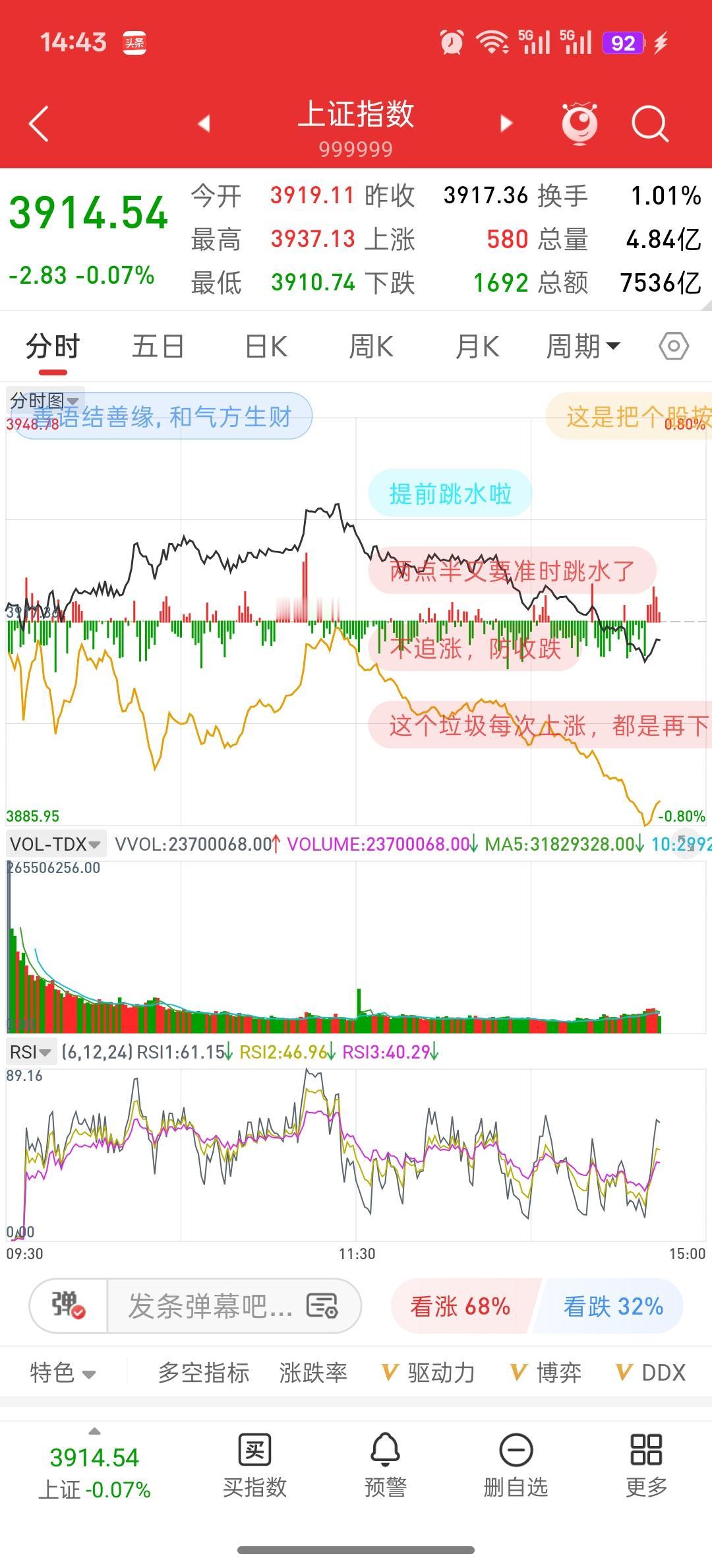 1.这波调整到位,成交量可能缩量到1.3万亿。 2.下跌没有量,需要放量才能到底