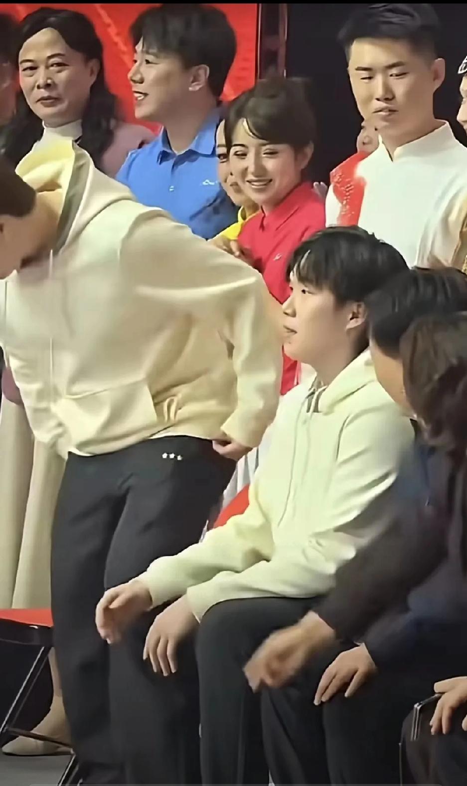 头哥这次来魏桥文艺晚会,没想到现场出现了一个搞笑的场景。 一位穿红衣的大姐,看到头哥、甜甜和台林坐在前排,激动得连连呼好家伙,眼神中满是欢喜和激动,一会儿看这个,一会儿看那个,一会儿看头哥,一会儿看台林,一会儿看甜甜。 这位大姐真的很可爱。她开始认真整理自己的头发,生怕镜头扫到自己时状态不好,为了那一瞬间漂亮。想在镜头扫到她时,美美的入镜,还想在喜欢的运动员身边,美美的入镜。 这么细心,这么打扮,这么拼命,为了那一瞬间,也是可爱到让人想笑的地步!