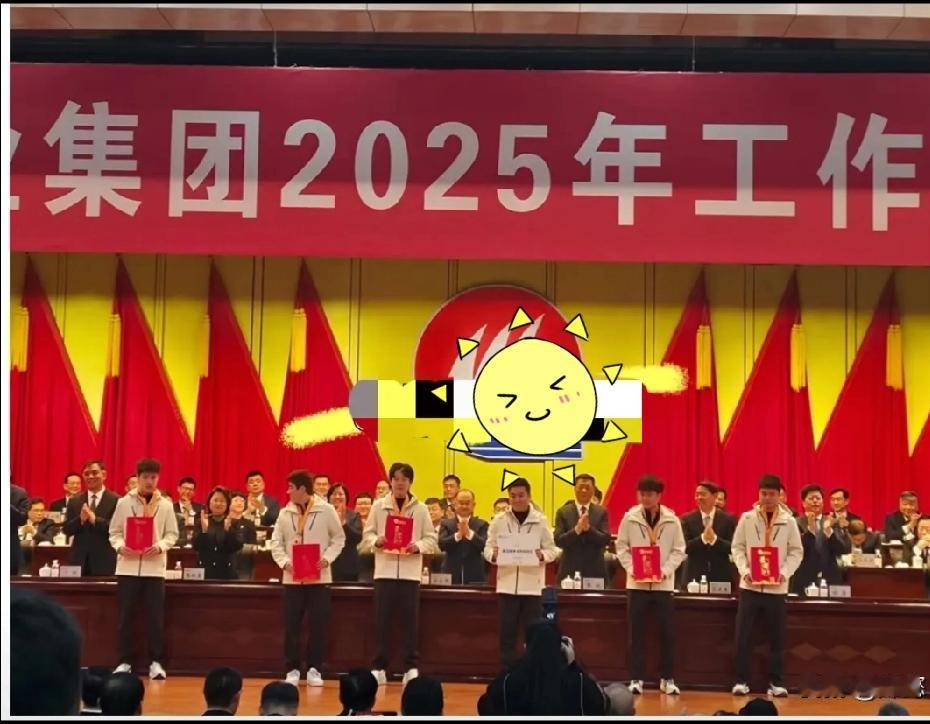 来喽来喽,颁奖喽! 魏桥昨晚举办迎新年文艺演出,王楚钦、梁靖崑、林昀儒、周启豪、黄友政及教练组、员工参加,气氛热烈,内容丰富多彩。 今天又举办年度表彰大会,为运动员颁发荣誉证书,充分体现魏桥对运动员的重视与关心。 王楚钦昨天穿着的魏桥帽衫卖断货了,今天发放冲锋衣也会卖断货吧!