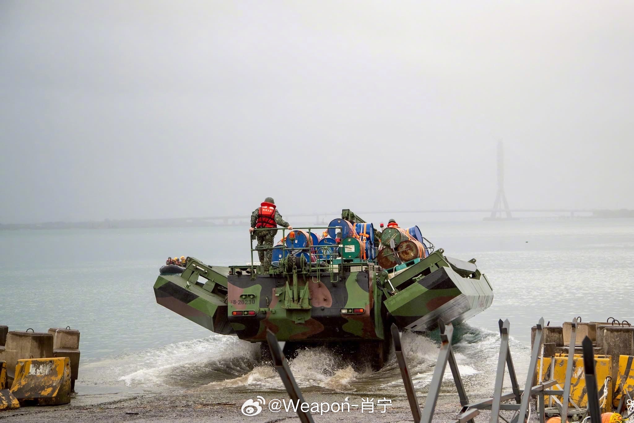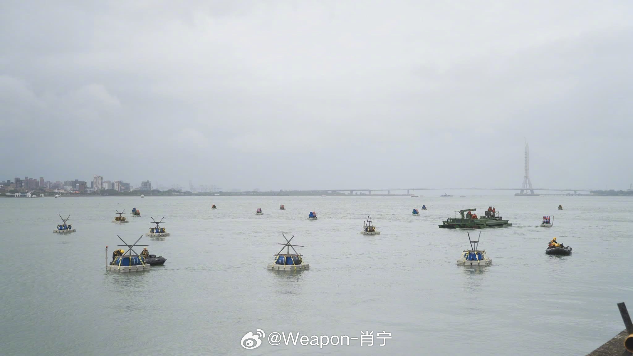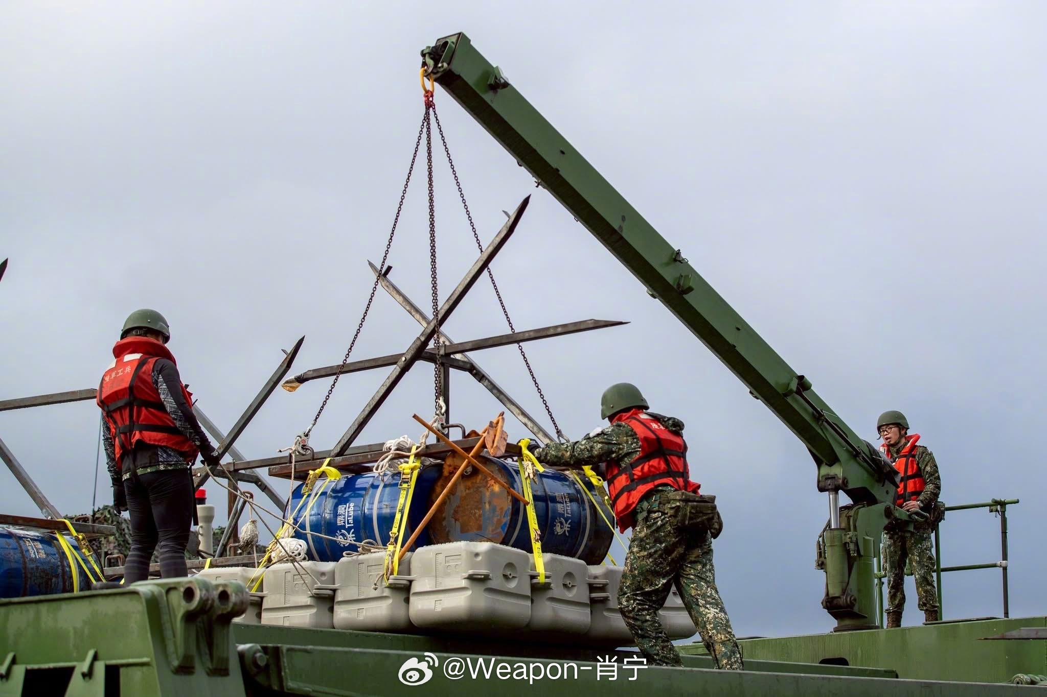 正义使命2025演习高清大图 因害怕解放军针对性军演转变为突袭,台伪军第3作战区53工兵群今日在新北地区实施河道阻绝设置演练,模拟战备提升情境下,迅速完成河道阻绝部署,验证工兵部队即时应处能力。